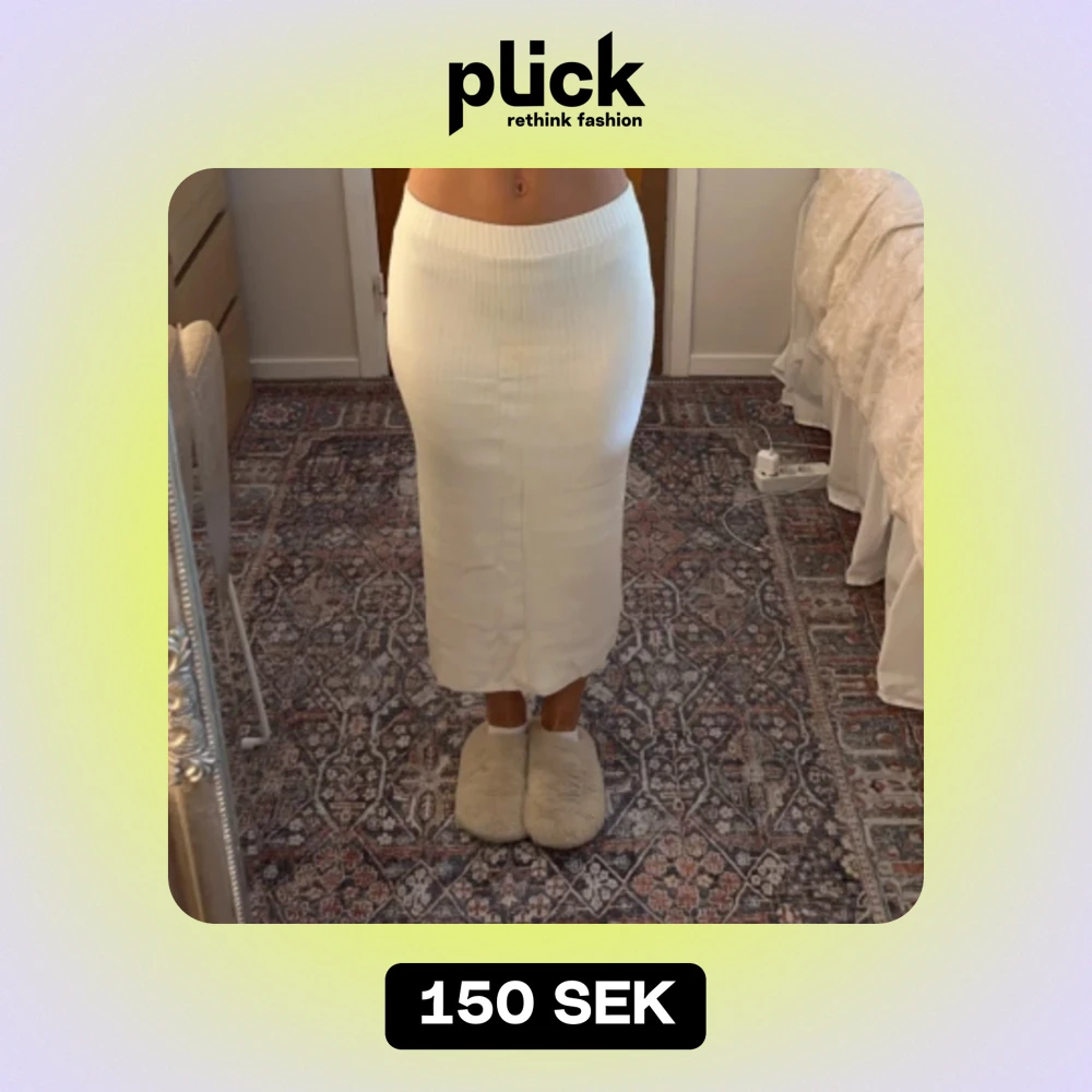 Vit stickad kjol ifrån Hm. Den har en slit i vänster sida. (Vecken är från att den legat ihopvikt och stryks innan den skickas) Så så fin till sommaren!! 😍😍