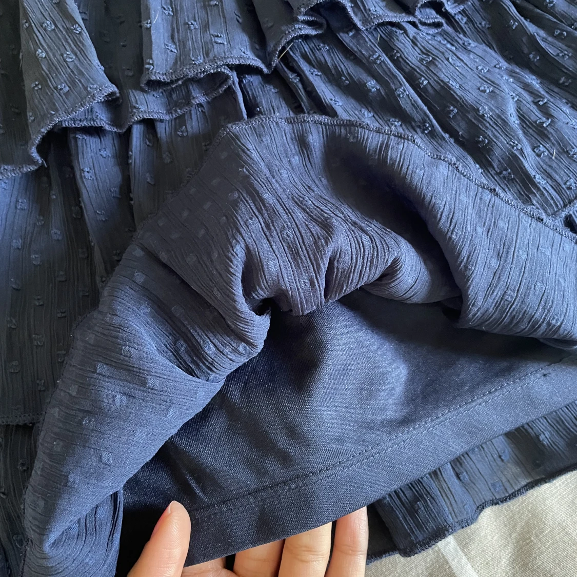 Marinblå volangkjol från Lindex barnavdelning i storlek 122/128. Sitter perfekt på mig som är 162 cm. Skriv för mer bilder