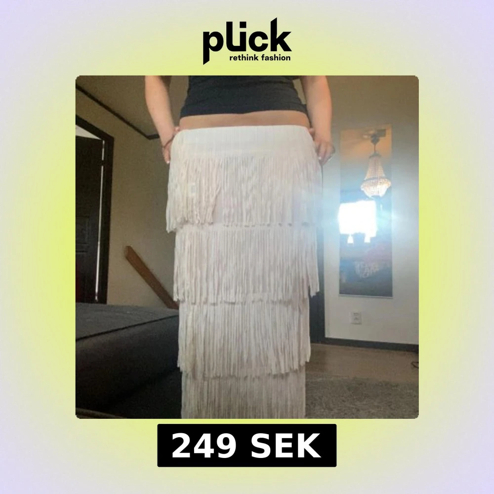 Säljer en vit långkjol med flera lager fransar som ger en riktigt cool och bohemisk vibe. Kjolen har rak passform och är perfekt för dig som vill sticka ut med en unik look. Superfin att styla med en enkel topp eller crop. Fick i present så vet inte vart den är ifrån, aldrig använd endast provad. Står ingen storlek men jag bär vanligtvis M och finns resårband så passar större också! Krämvit färg, den är även lite genomskinlig (se sista bilder). Lägg gärna prisförslag