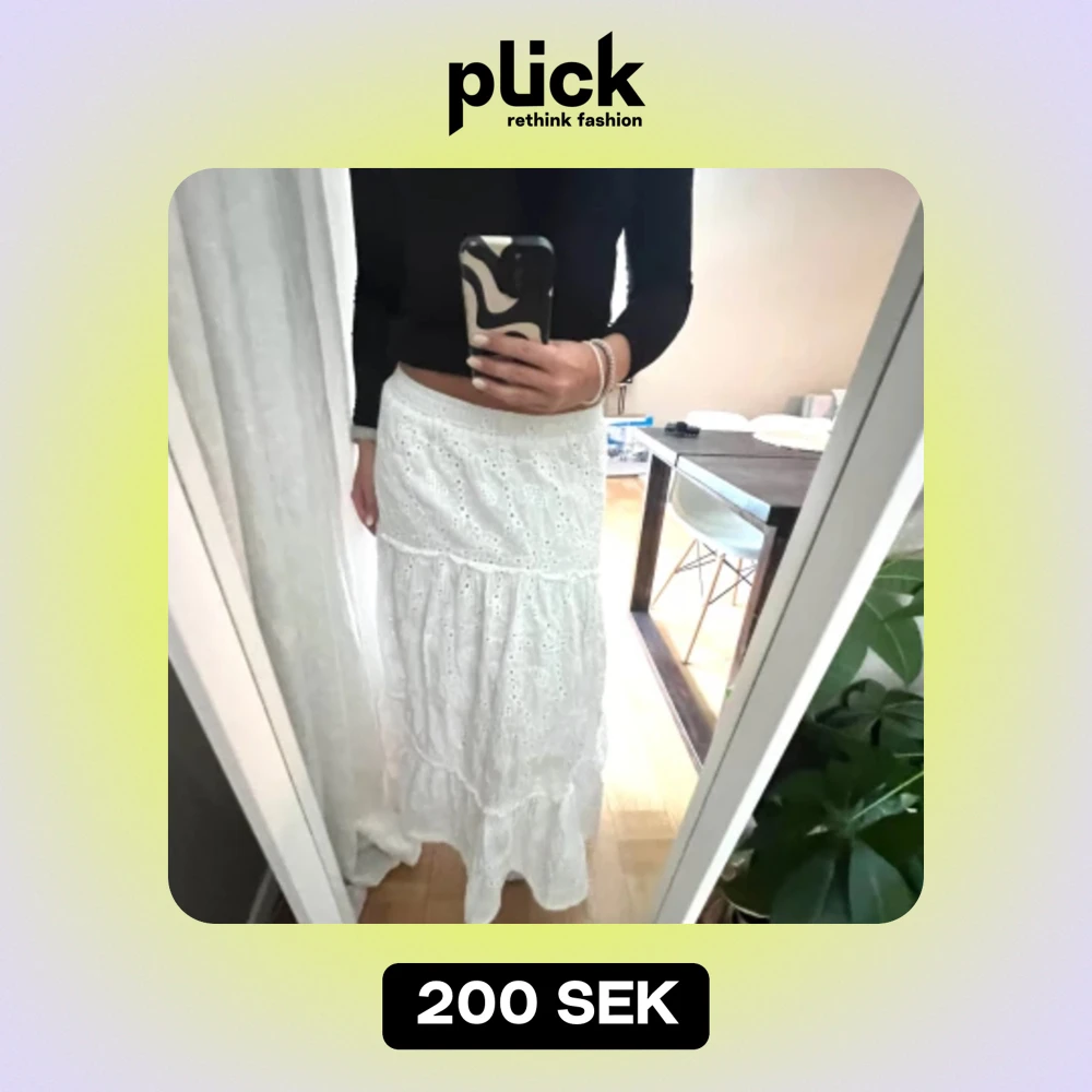En vit långkjol med spetsmönster🌸 Passar superbra nu till sommaren. Köpt på Cypern i en större storlek så att den skulle bli lång ☺️För referens är jag 1,60💕