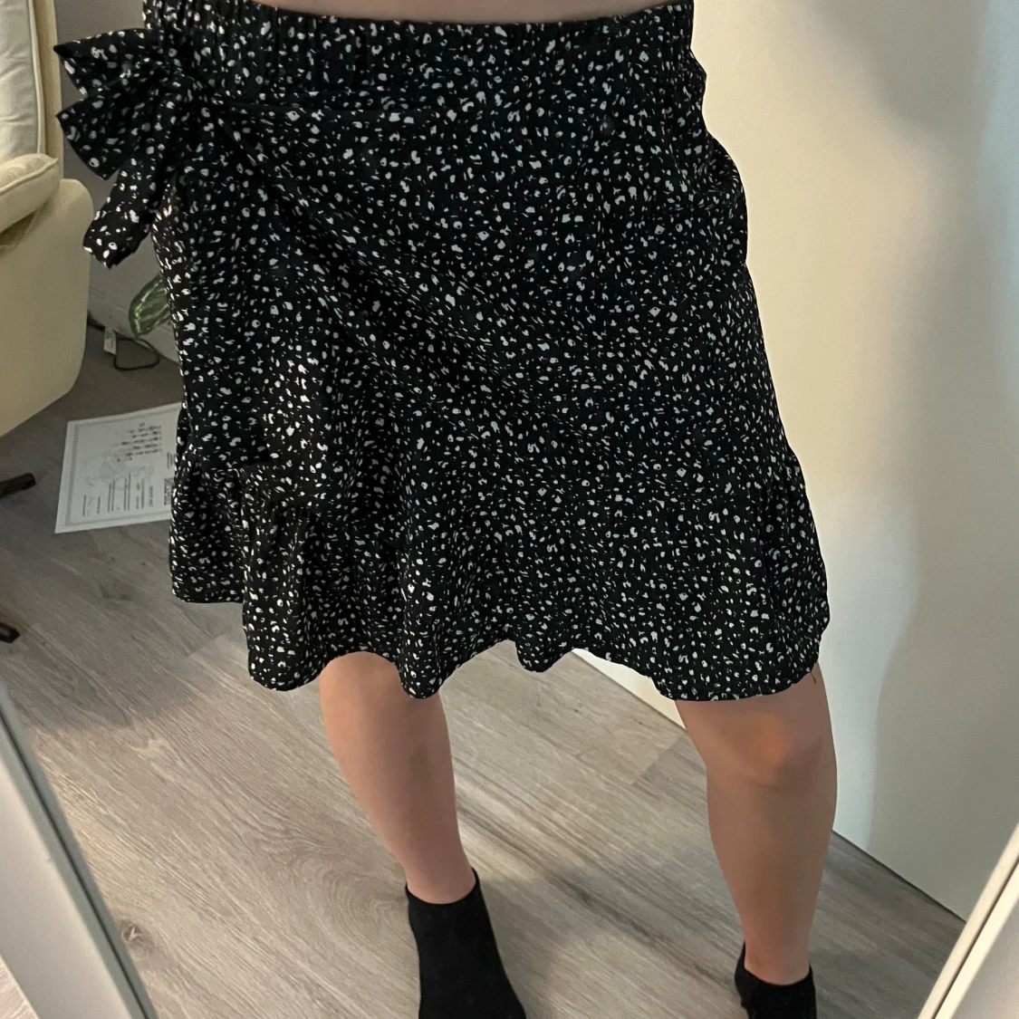 Kvart och vitprickig kjol. I okej gott skick!💕