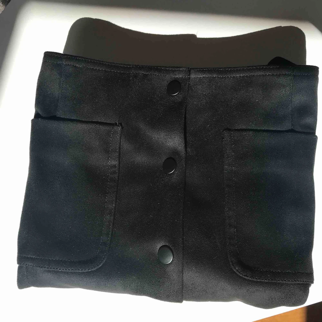 Mocka kjol i svart. A-formad kjol som sitter tajt i midjan. I fint skicka och knappt använd. Knapparna sitter ordentligt och går inte bara upp om man rör sig.