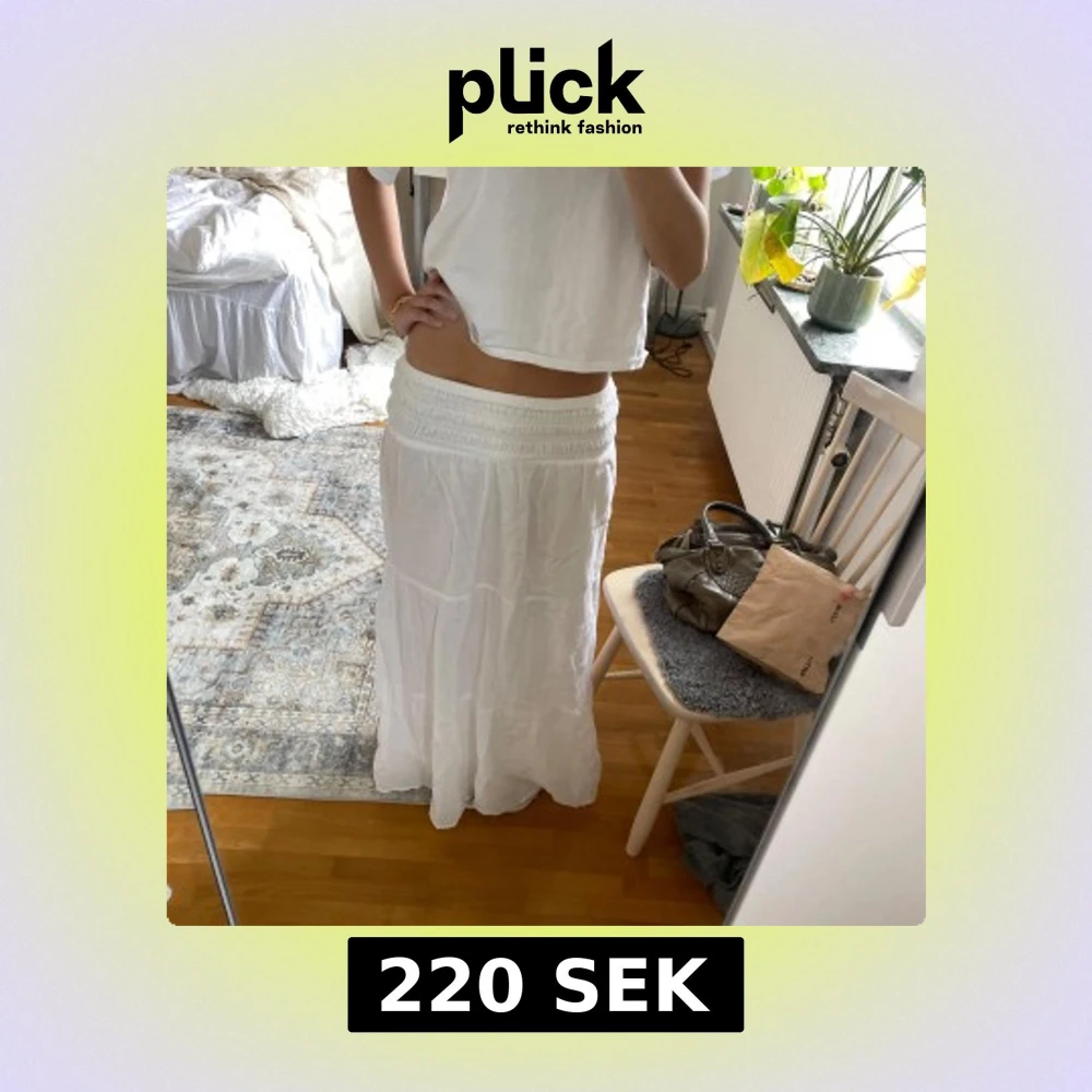 Säljer denna jätte söta långkjolen köpt på ginatricot. Använd ca 2 gånger därav nyskick. Jätte skönt material. Jag är 173 cm lång och den är inte för kort på mig. Hur lågmidjad man vill ha den går att justera själv.😊