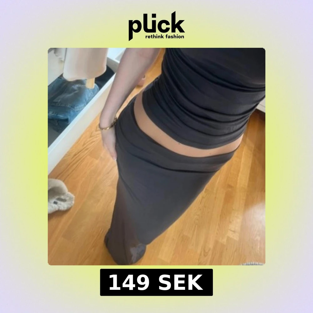 Säljer en grå långkjol med låg midja och tight passform. Kjolen är enkel och stilren, perfekt att styla med crop tops eller oversized tröjor. Materialet känns mjukt och följsamt mot kroppen.