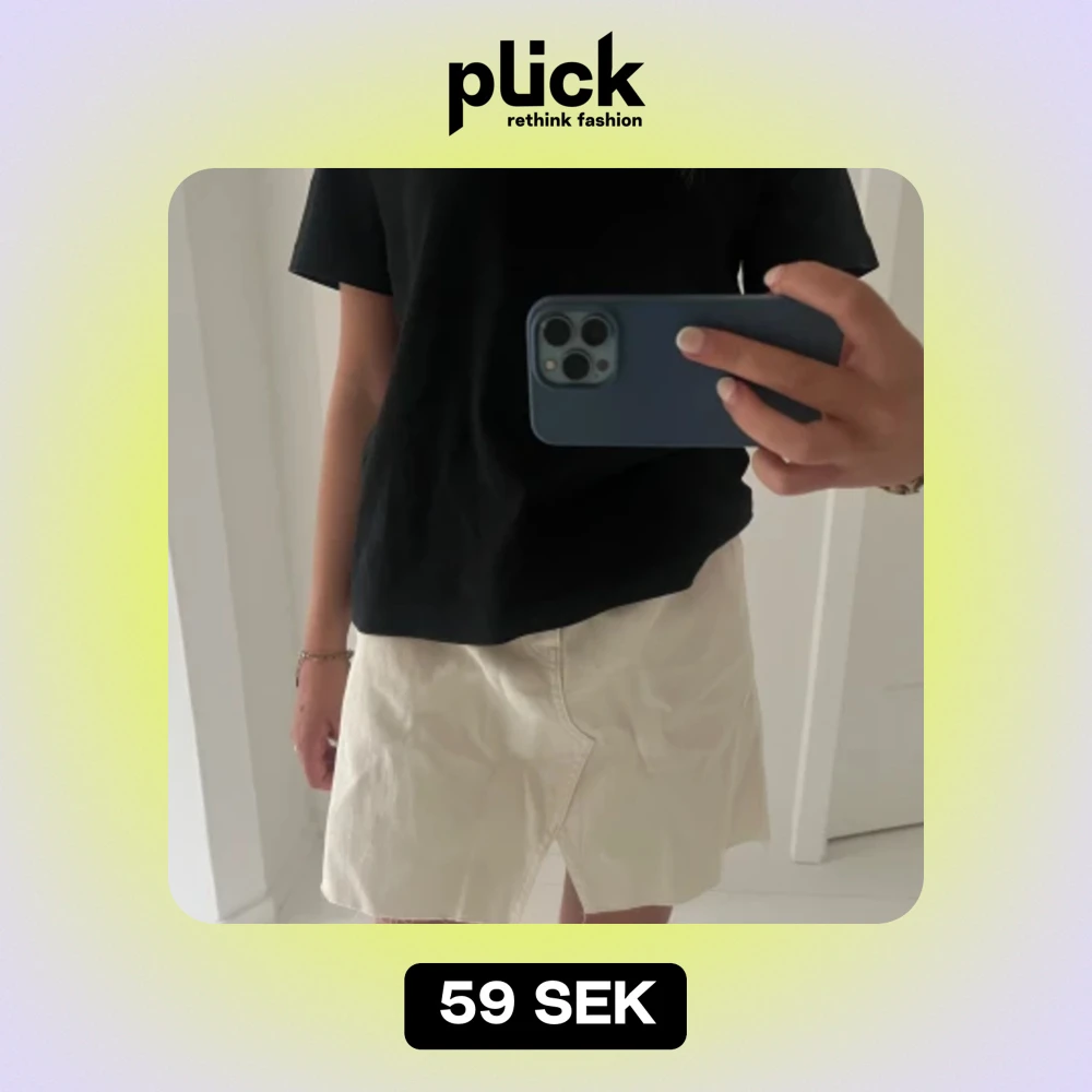 Skit snygg och ganska unik jeanskjol! Färgen är beige/krämvit aktig och kjolen har resår i midjan. Kjolen har även en slits framtill. Jag brukar vika ner kjolen litegrann då den är ganska lång/hög🥰🥰