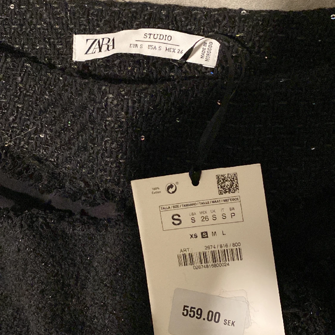 As ball kjol med fickor, Andrig använd ifrån Zara med prislapp var. Den är lite glittrig och kan användas både som topp och kjol Säljer den då jag inte kan ha den