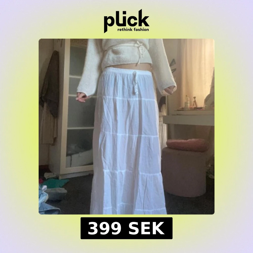 Superfin vit långkjol med avslappnad passform och knytband i midjan. Kjolen har en luftig och flowy känsla, perfekt för varma dagar. Den är sydd i flera våder som ger en snygg volym och bohemisk vibe. Snygg till skolavslutningen 💘💘