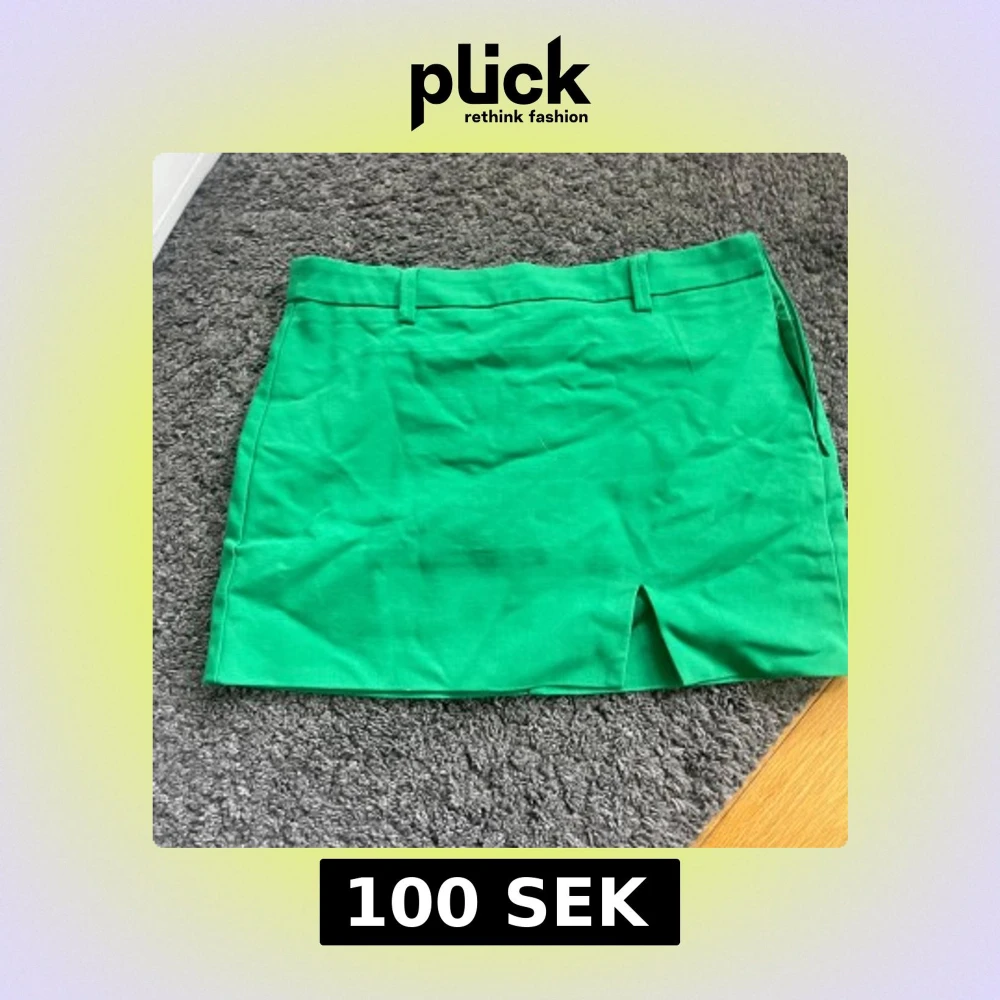 Snygg grön kortkjol från Stradivarius med bälteshällor och liten slits framtill. Kjolen har en dold dragkedja i sidan och är perfekt för dig som gillar färg. Enkel och stilren design som passar till många olika looks.