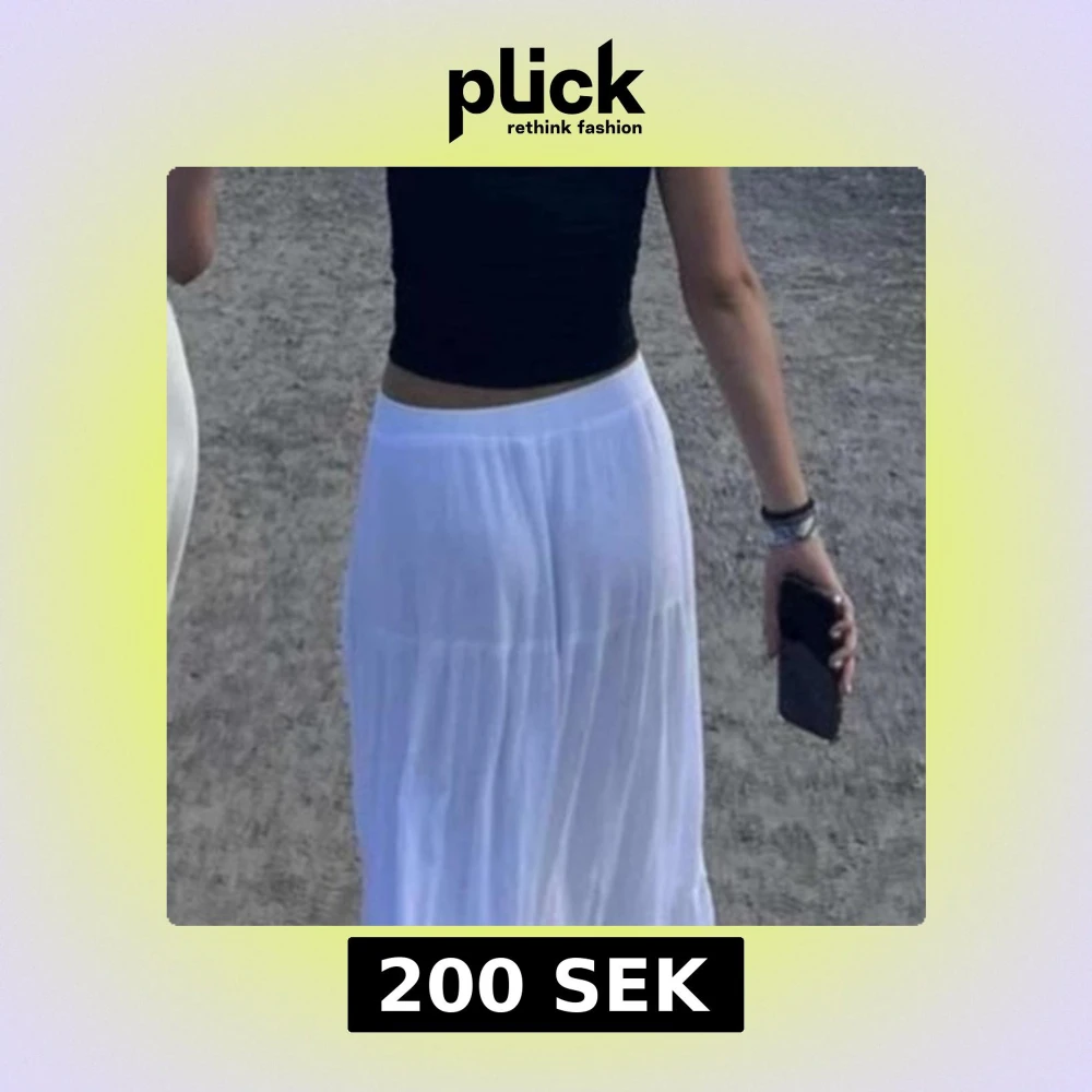 Säljer en elegant vit långkjol från Stradivarius. Kjolen har en luftig och flödande design, perfekt för varma dagar. Den är tillverkad i ett lätt material som ger en skön känsla. Passar utmärkt till en avslappnad stil.