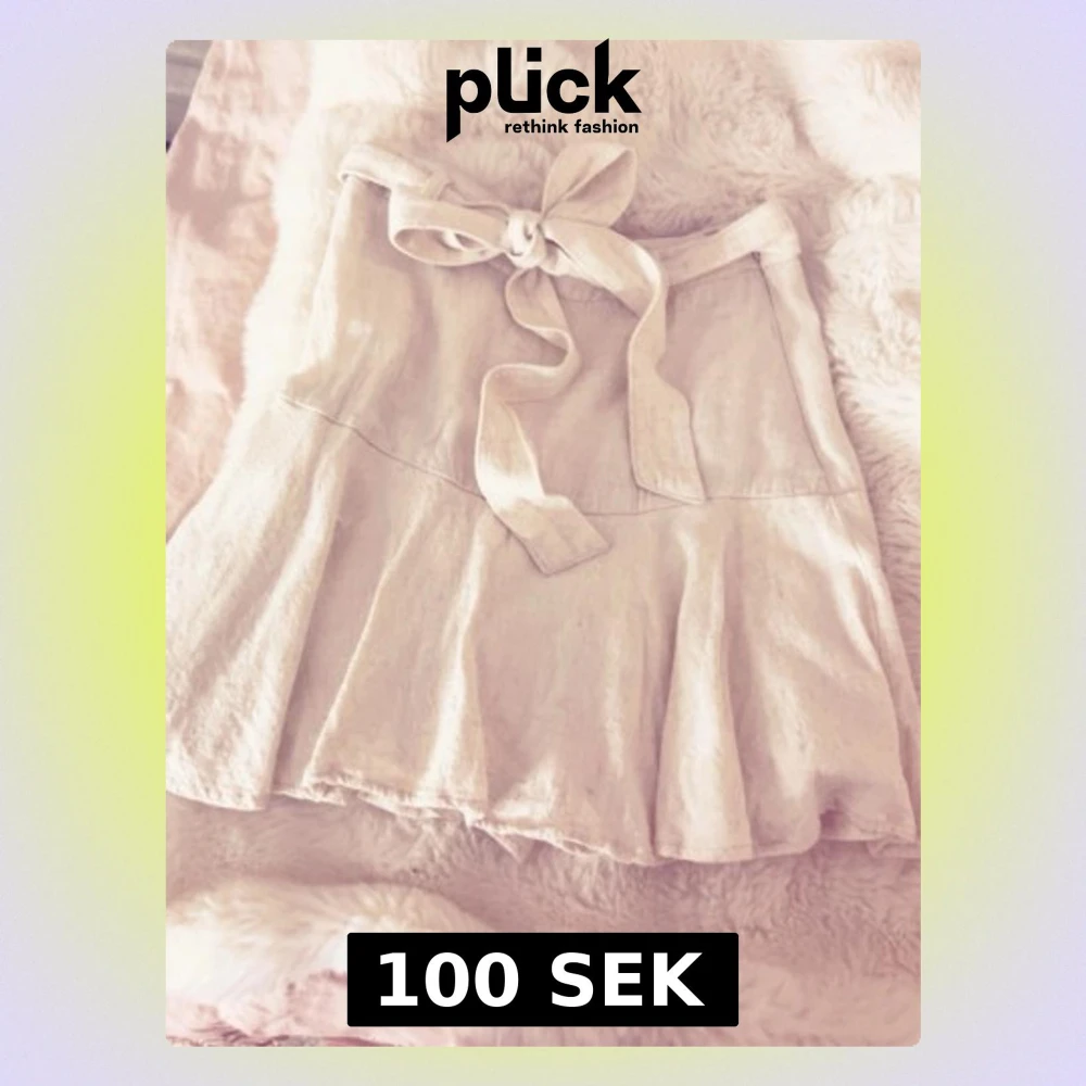 Supersöt beige kortkjol från Stradivarius med volangkant och bred knyt i midjan. Kjolen har en feminin siluett och är tillverkad i ett mjukt tyg som känns skönt mot huden. Perfekt för dig som gillar en romantisk och trendig stil. Rekommenderar starkt för en fin sommarlook. Färgen är ljus beige, nära vit Pris kan diskuteras.