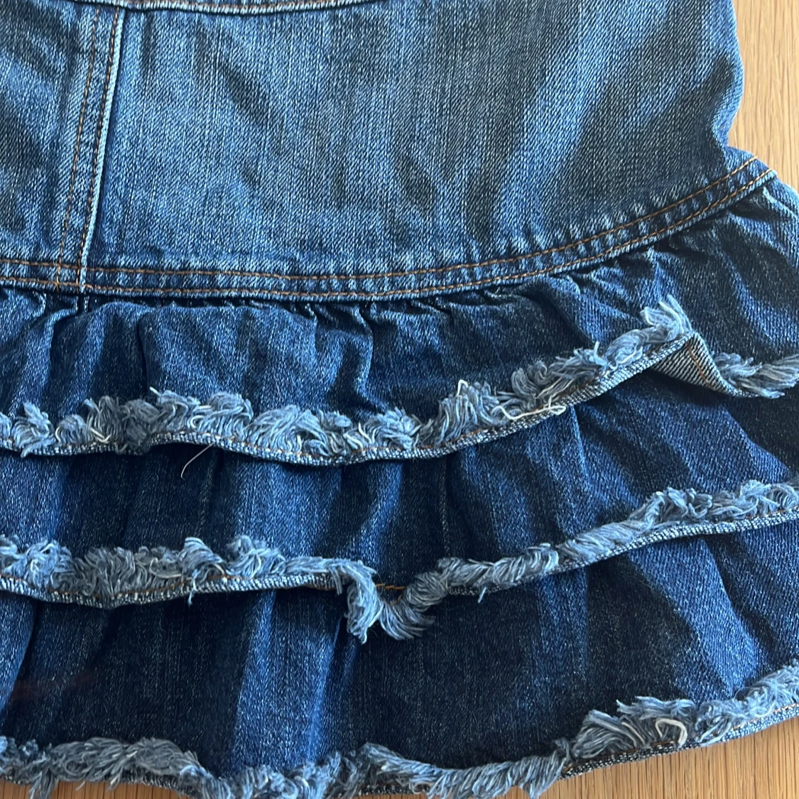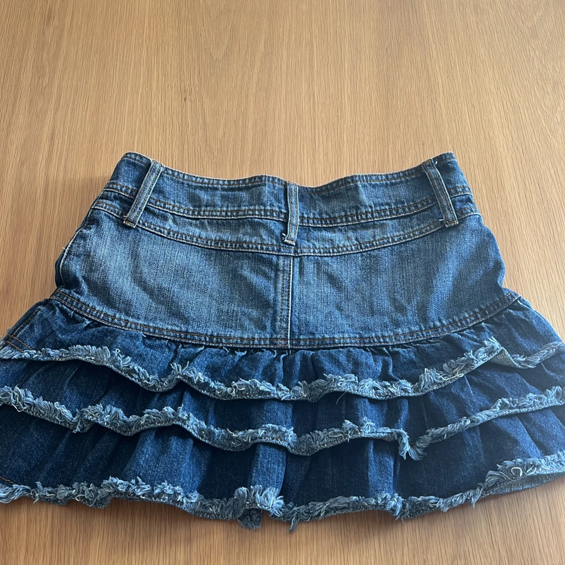 Säljer min skitsnygga jeanskjol med volanger eftersom att den tyvärr är för stor för mig. Den är fint skick och nästan aldrig använd, tveka inte på att ställa frågor! Skulle säga att den passar en S