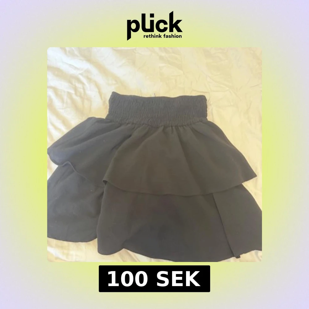 svart volangkjol från ONLY med bred resår i midjan i storlek 36.