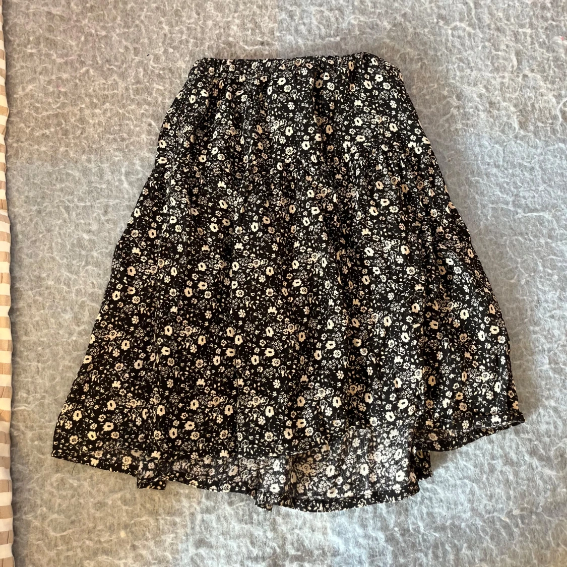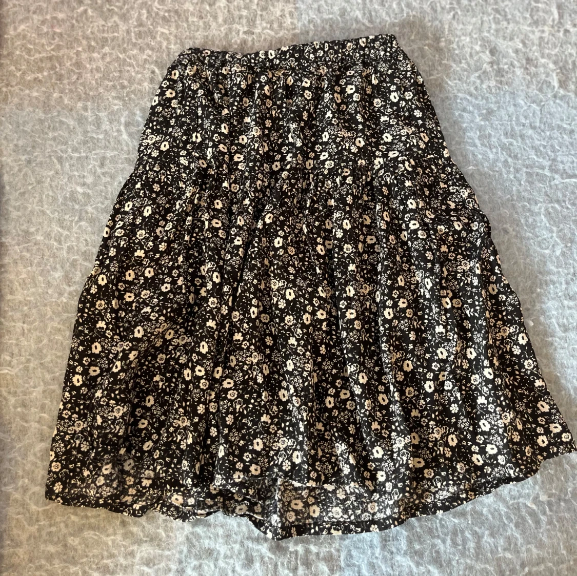 Svart kjol med vita små blommor.Jag har inte storlek 116 i kjolar men denna kjol kan man använda till en lång kjol blandat med en vanlig kort kjol.Den är skön och har lite volym.💕