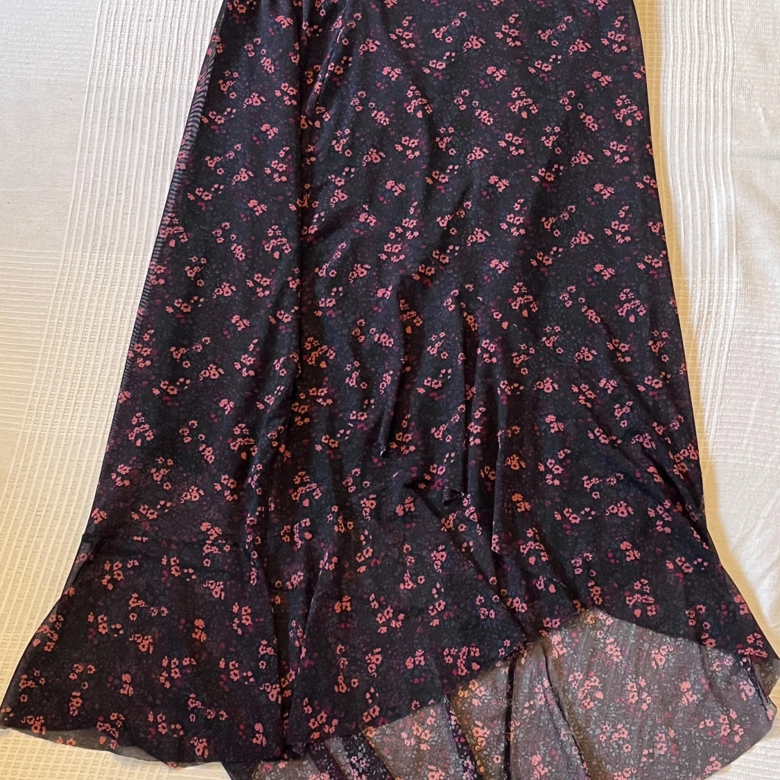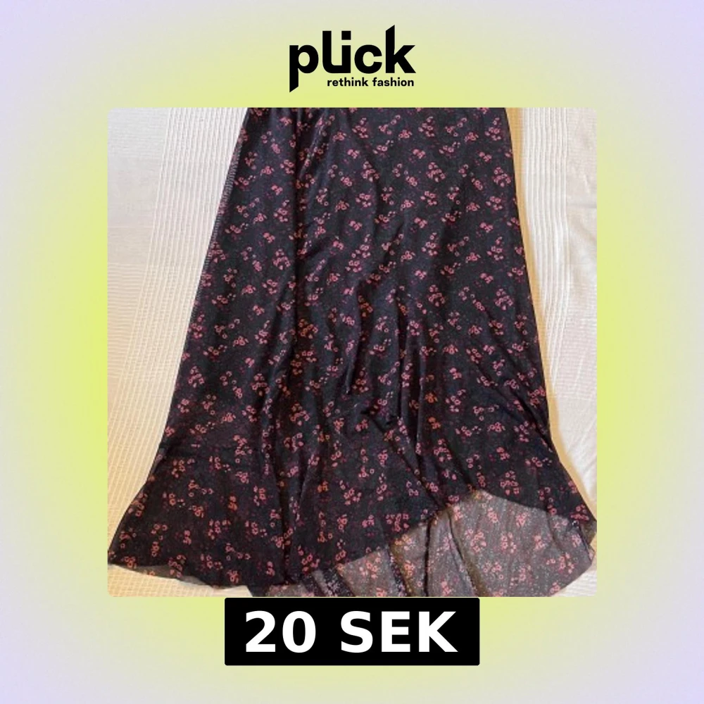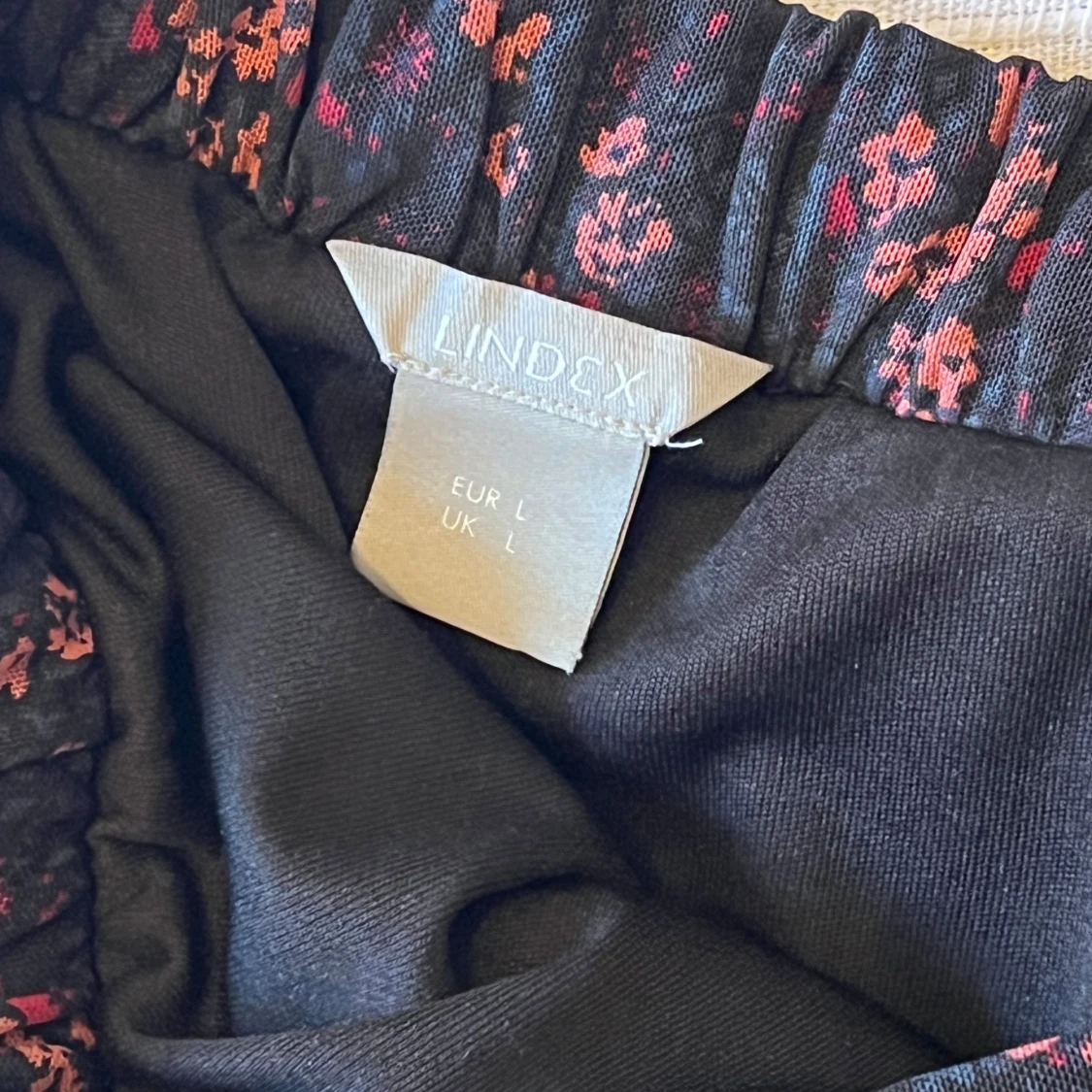 Supersnygg svart långkjol från Lindex med små rosa blommor över hela tyget. Kjolen har en lätt utsvängd form och resår i midjan för extra komfort. Perfekt för dig som gillar en romantisk och chill stil.