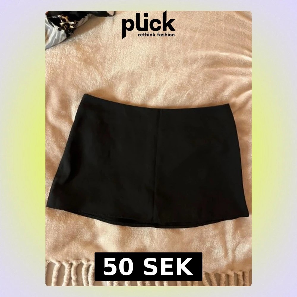 Säljer en svart, stilren minikjol med rak passform. Kjolen är kort och har en klassisk look utan detaljer eller mönster. Perfekt att matcha med en oversized tröja🩷