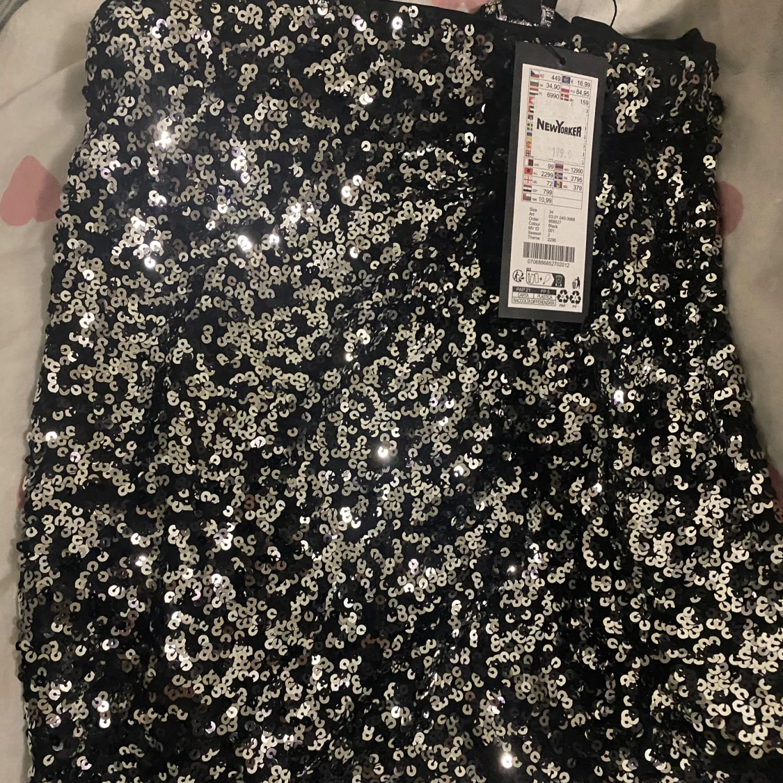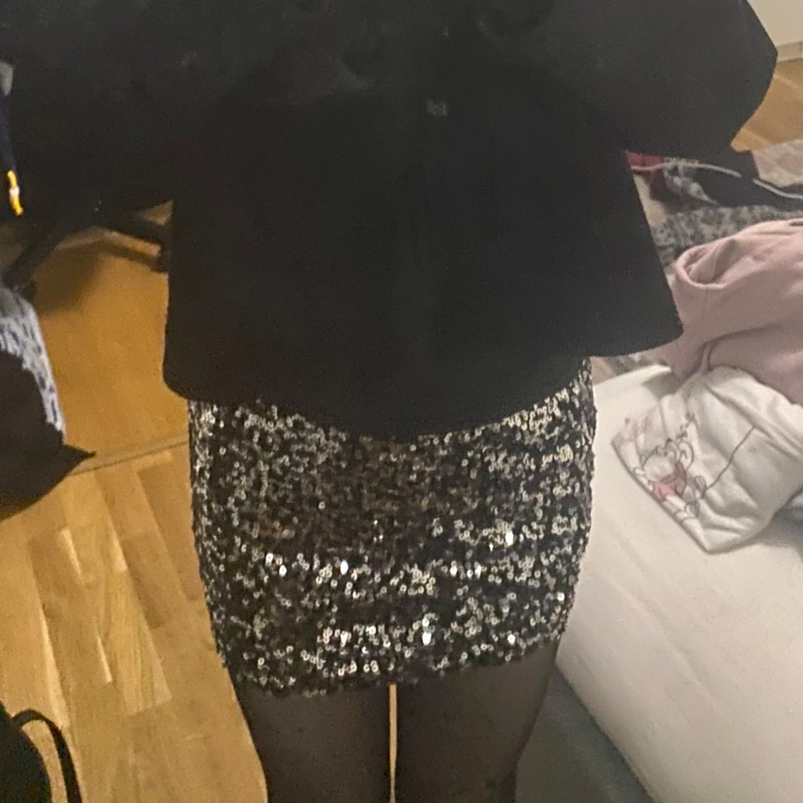 Snygg svart kortkjol täckt med glittrande paljetter. Perfekt för att sticka ut på festen! Kjolen har en tight passform och är ett måste för garderoben.