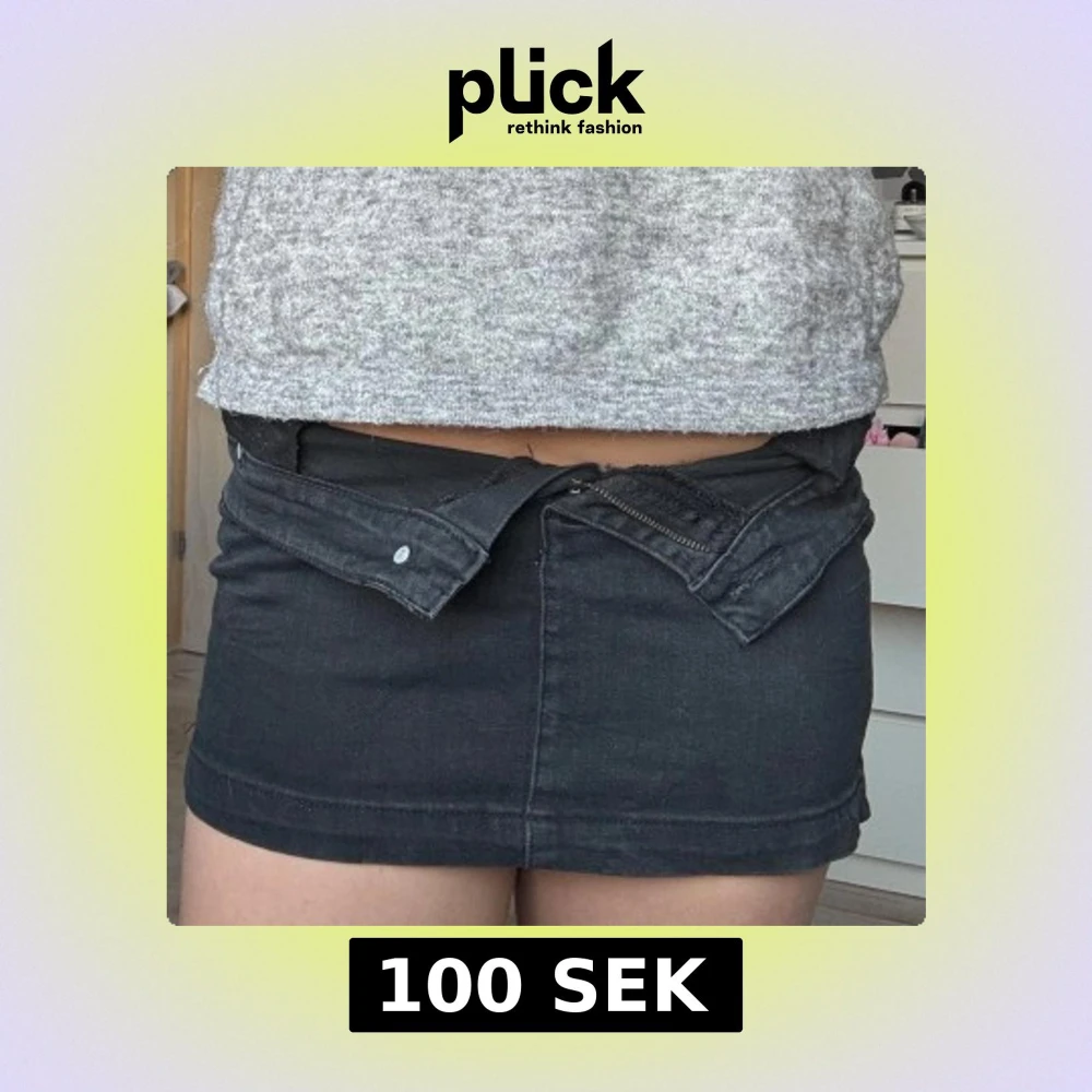 Svart jeanskjol med knapp och dragkedja framtill. Snygg och enkel att matcha till olika stilar. Lappen med storleken är bortklippt men skulle säga s