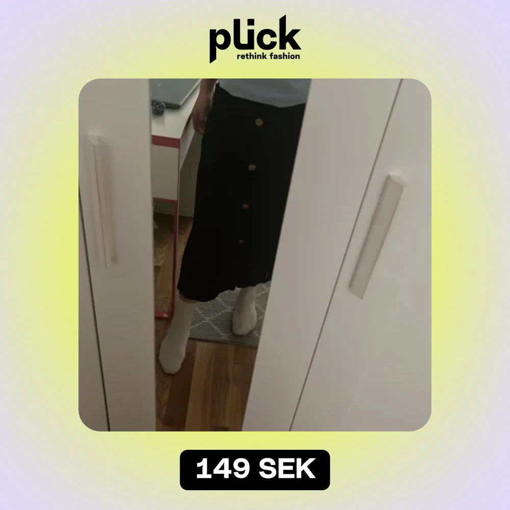Svart kjol med guld knappar, väldigt söt, behöver stryck annars nästan aldrig använt, o lite över knäna.
