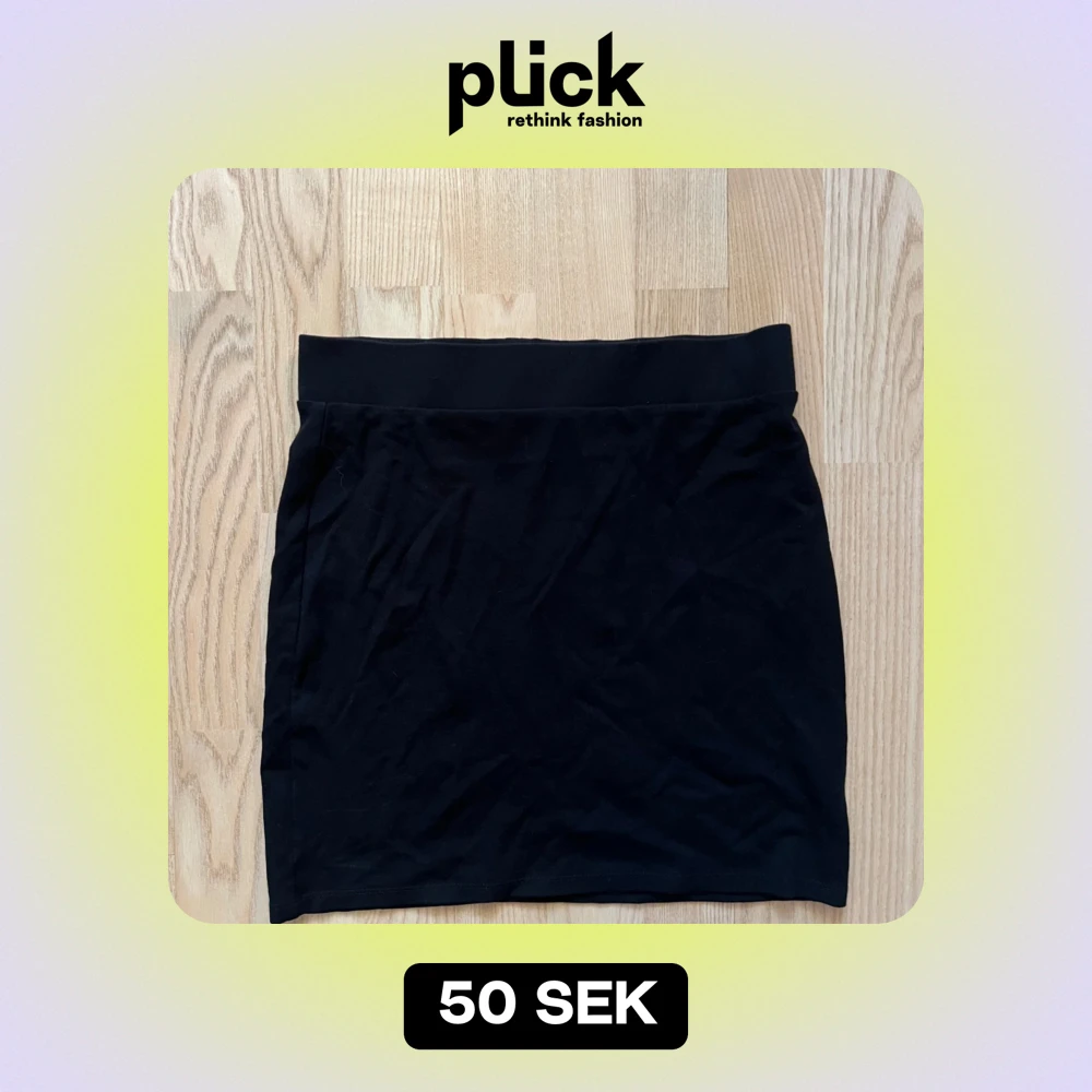Snygg svart kjol från Bik Bok i storlek S. Den har en enkel och stilren design med en elastisk midja för en bekväm passform. Perfekt för både vardag och festliga tillfällen!
