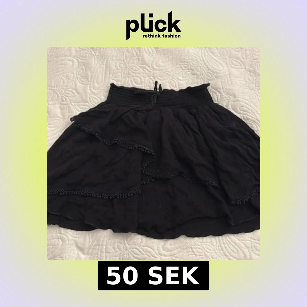 Jätte fin svart kjol i storlek 170 från Lindex kids men passar upp till storlek M. Enda defekten är att en del av rosetten på framsida midjebandet har lossnat upp, men inget större problem! 😊