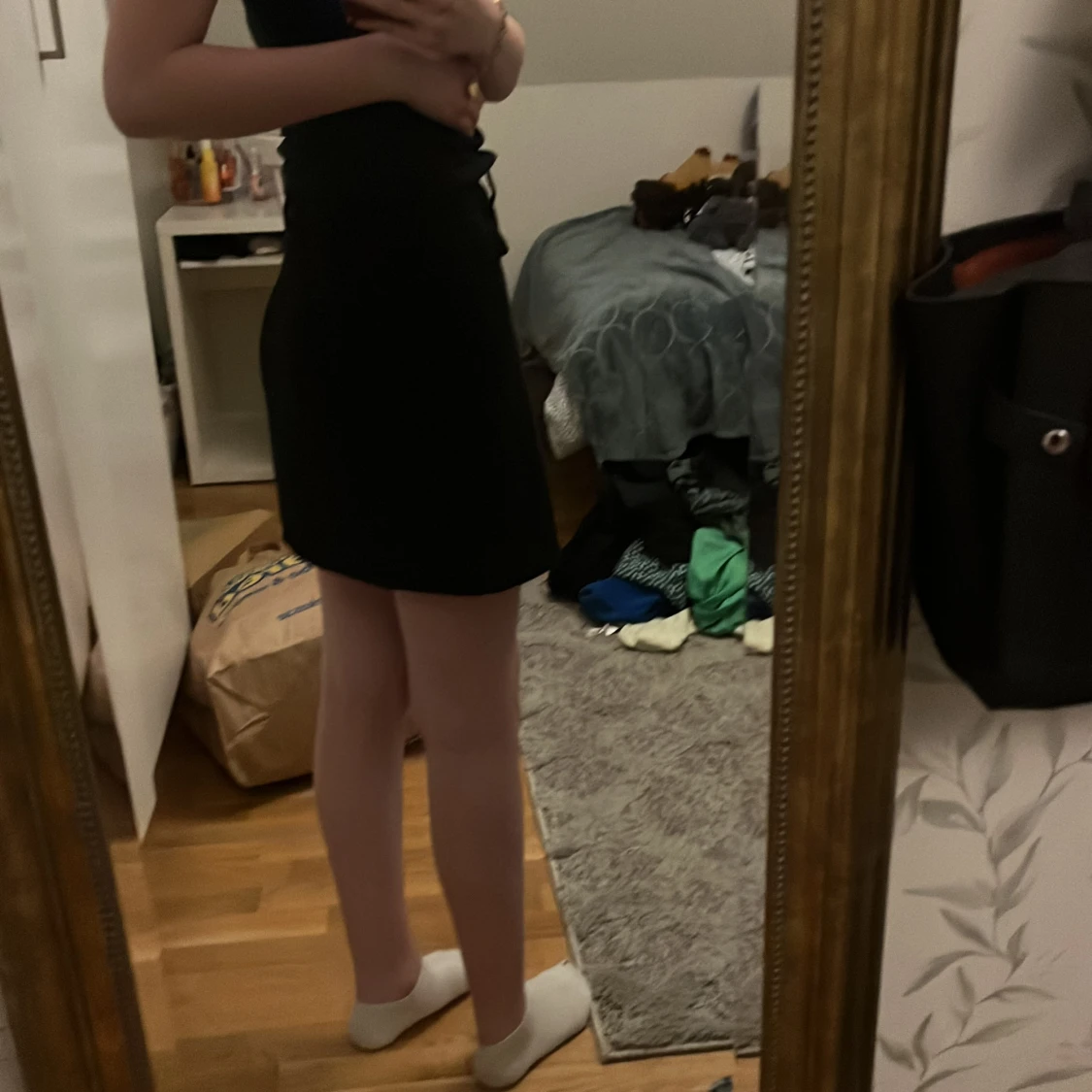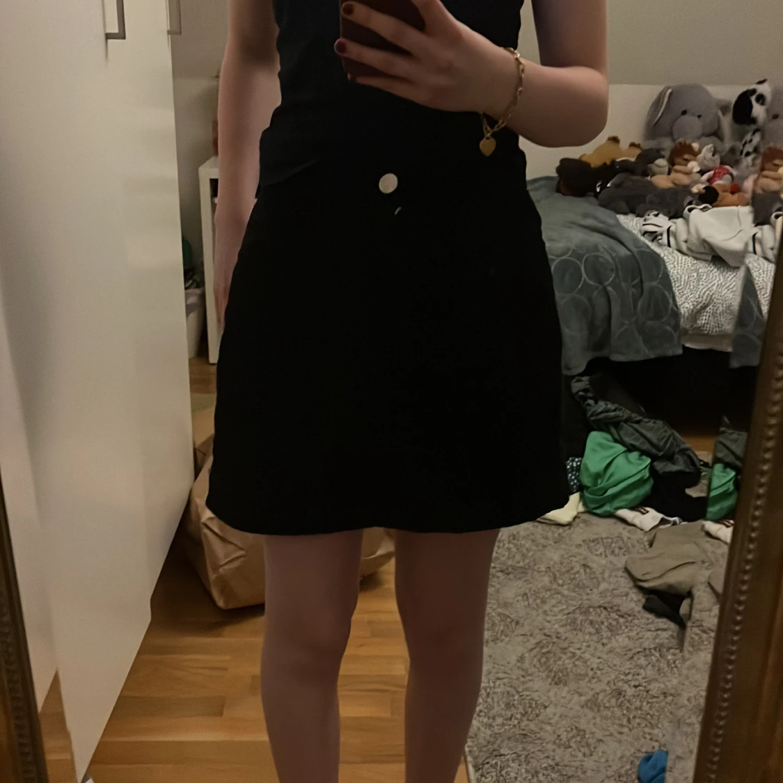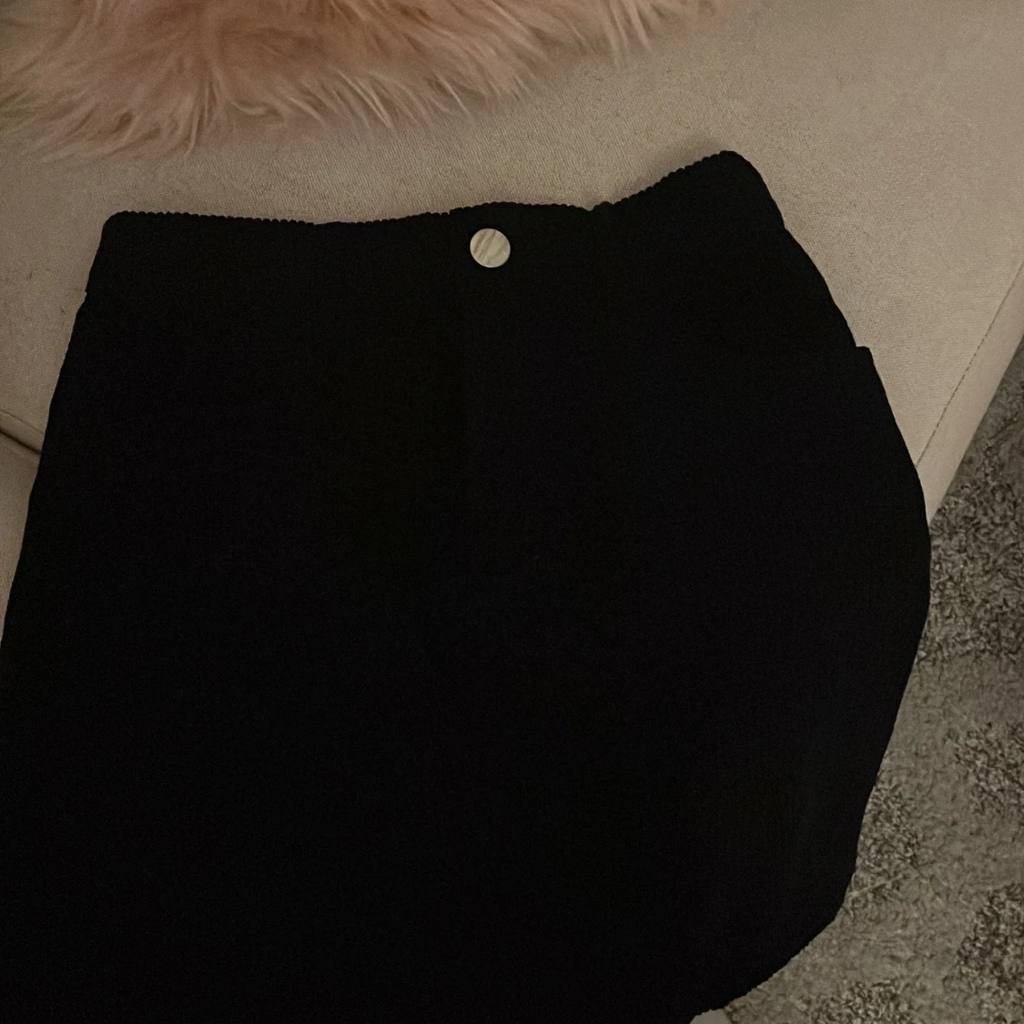 Snygg svart kjol från Shein i storlek S. Kjolen har en enkel design med en knappdetalj framtill. Perfekt för att matcha med olika toppar och accessoarer.
