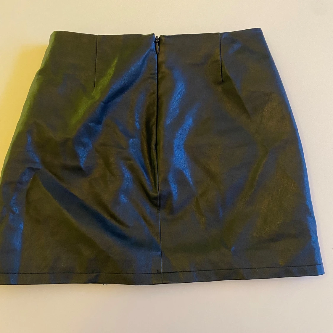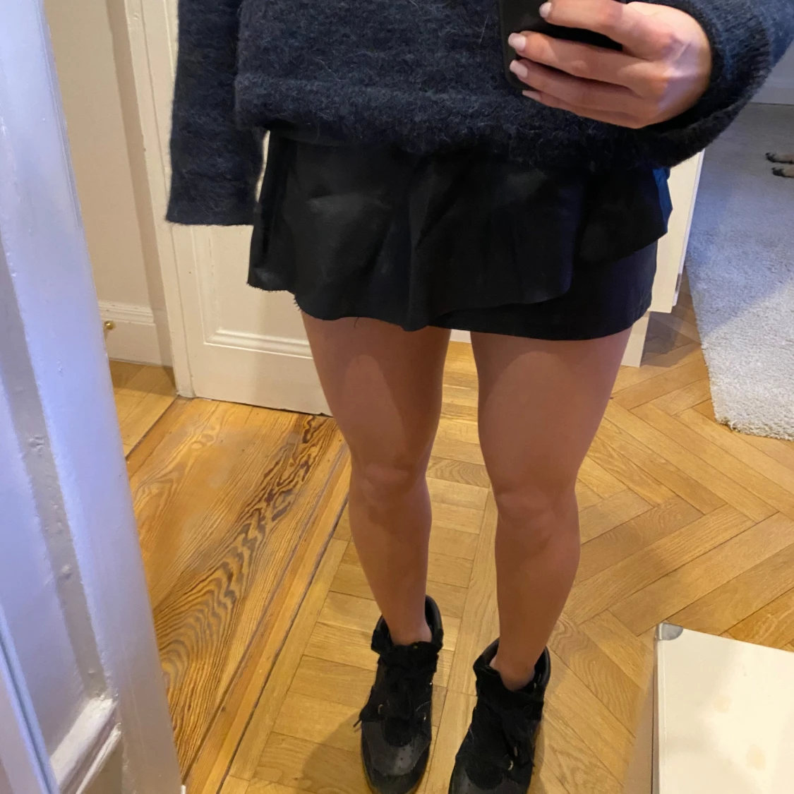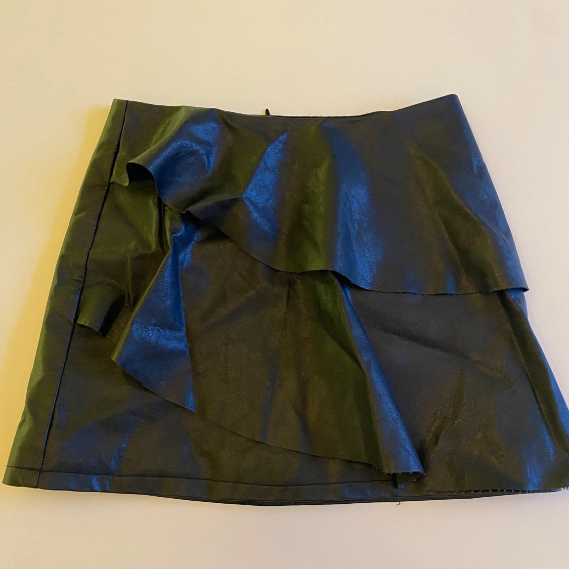 Trendig svart kortkjol i skinnimitation med volangdetaljer och dragkedja bak. Perfekt för att ge din outfit en edgy touch. Passar bra till både sneakers och klackar.