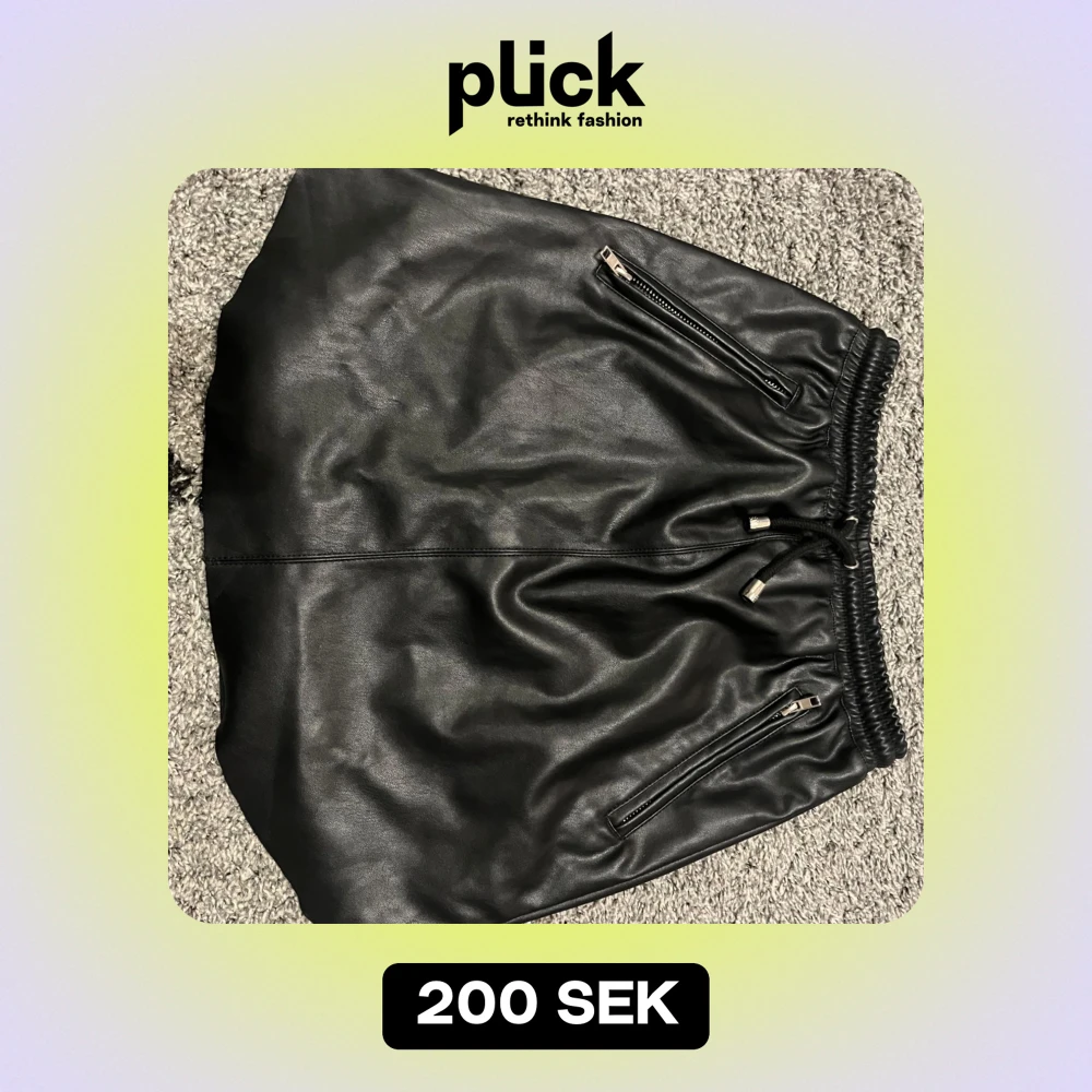 Snygg svart kjol i skinnimitation från NA-KD i storlek XS. Kjolen har en elastisk midja med dragsko och två coola dragkedjor framtill. Perfekt för en trendig look till både vardag och fest! 🖤