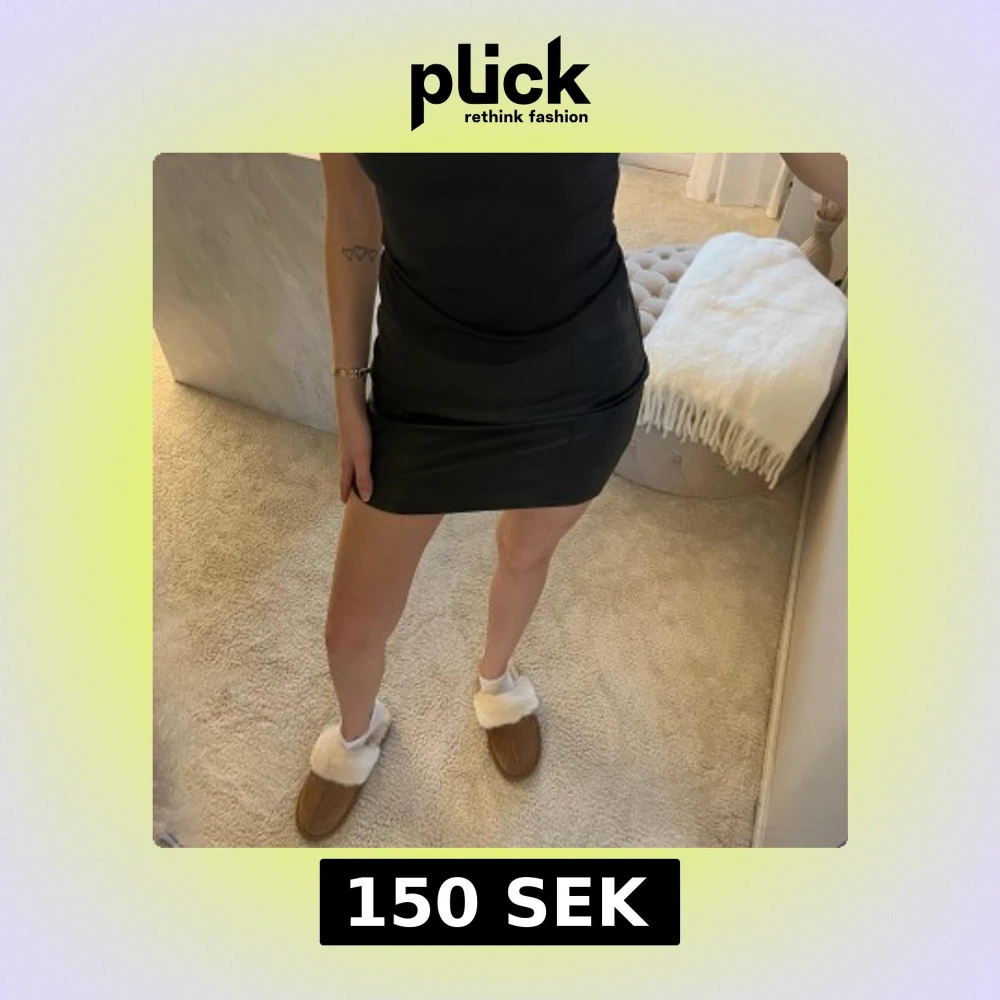 Snygg svart kjol i skinnimitation med en tight passform. Perfekt för en trendig look. Kjolen är kort och har en stilren design utan extra detaljer. Passar bra till både vardag och festliga tillfällen.