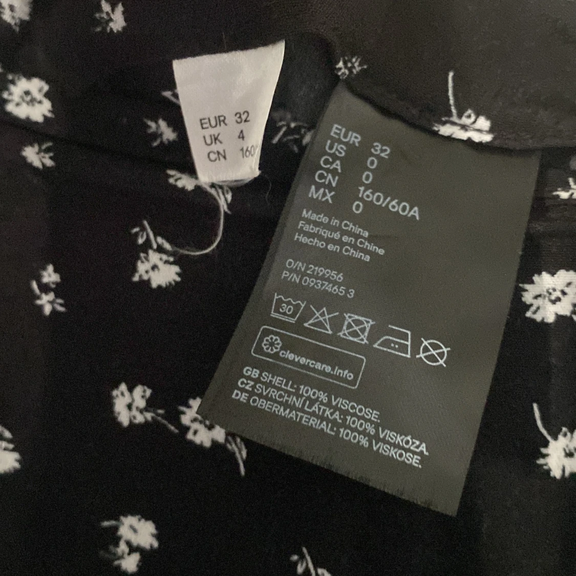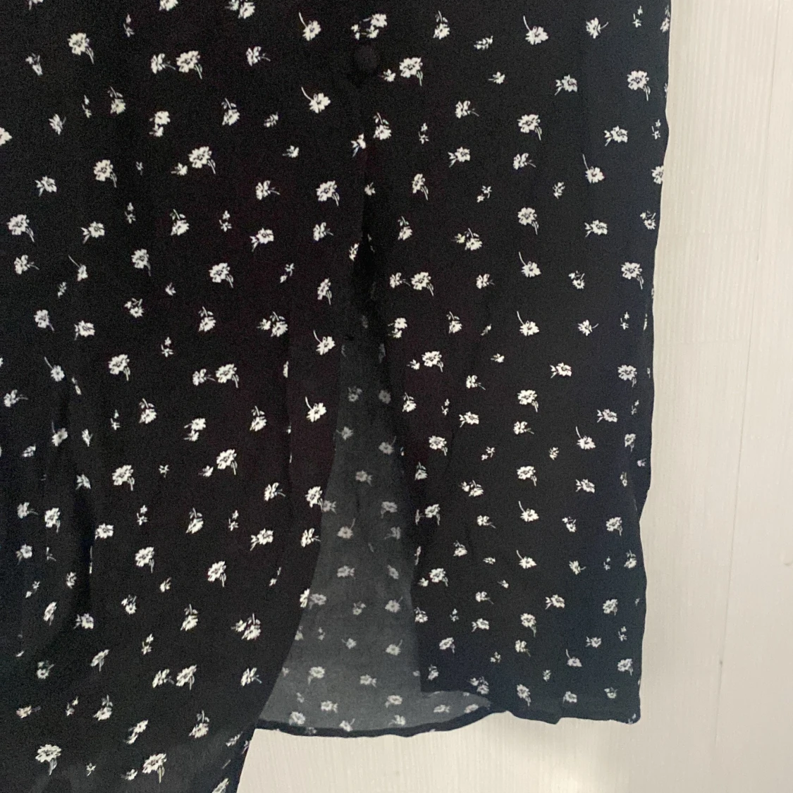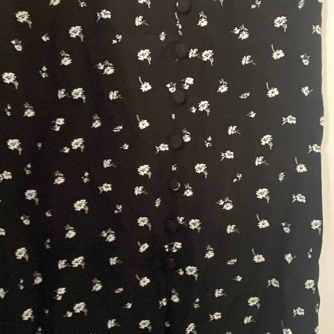 Kjolen är använd några gånger men känns ny. Den har slits vid ett ben med knappar upp (se bilden)