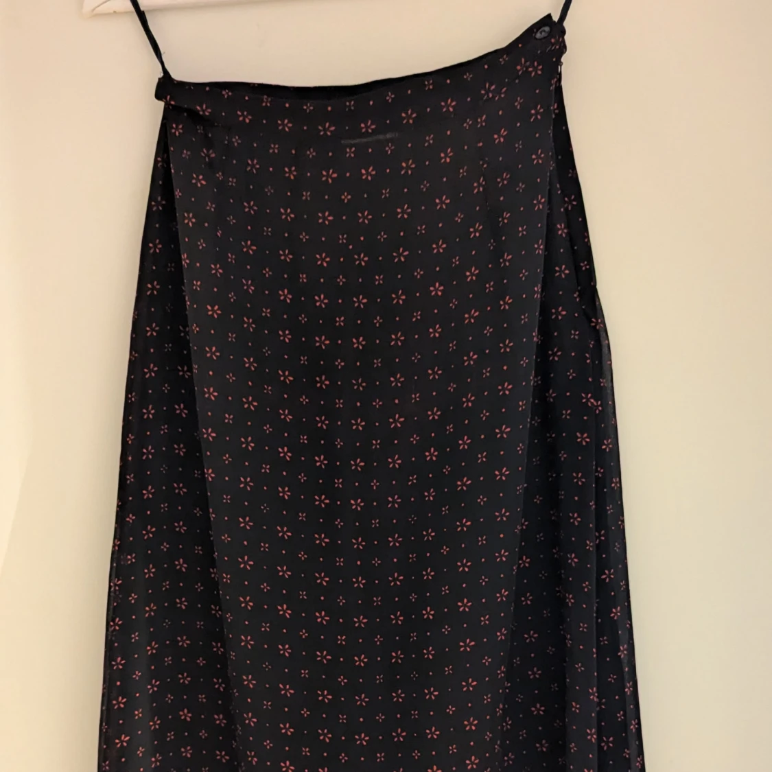 Säljer en tunn svart långkjol från Cappuccini i storlek M. Längden är ca 79 cm. Mått i midjan ca 69 cm. Knäpps med liten knapp och dragkedja i sidan. 32 cm slitsi båda sidorna. Består av två lager där det yttre lagret är i mesh. Kjolen har ett sött blommönster i rött och är tillverkad i 100% polyester. Perfekt för både vardag och festliga tillfällen. Den är i mycket bra skick och redo för en ny garderob! 🌸