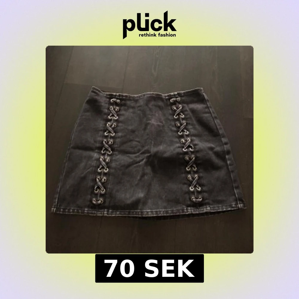 Snygg svart kortkjol från H&M med snörningsdetalj på framsidan och dragkedja där bak som inte längre kommer till användning.
