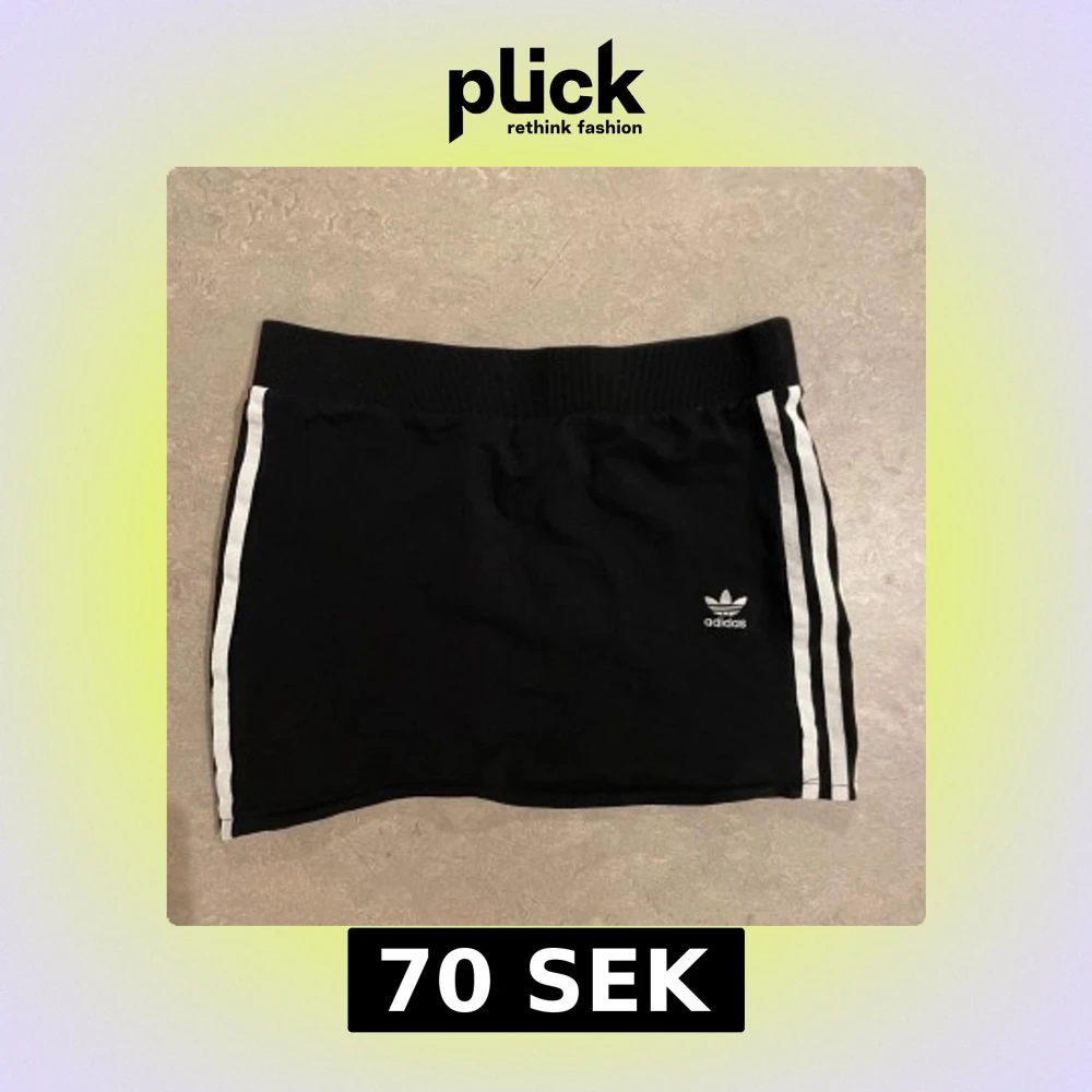 Svart kortkjol från Adidas med klassiska vita ränder längs sidorna och Adidas-logga framtill. Bred resår i midjan för en bekväm passform. Sportig och stilren design som passar perfekt till vardags eller träning.