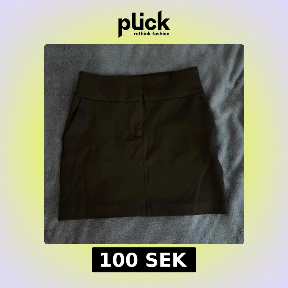 Svart kort kjol från Gina Tricot med fickor. Bara använd fåtal gånger så väldigt gott skick. Har dragkedja och två spännen att knäppa med. Storlek xs!