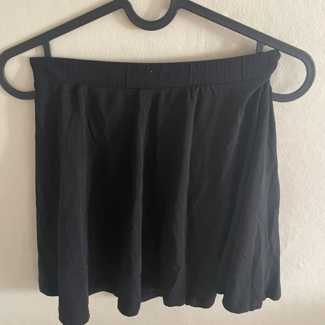 Enkel och stilren svart kortkjol med lätt utställd passform. Kjolen är sydd i ett mjukt bomullstyg och har en klassisk midja utan synliga detaljer. Perfekt att matcha med olika toppar för en clean look.