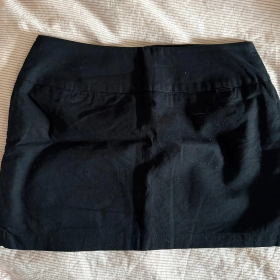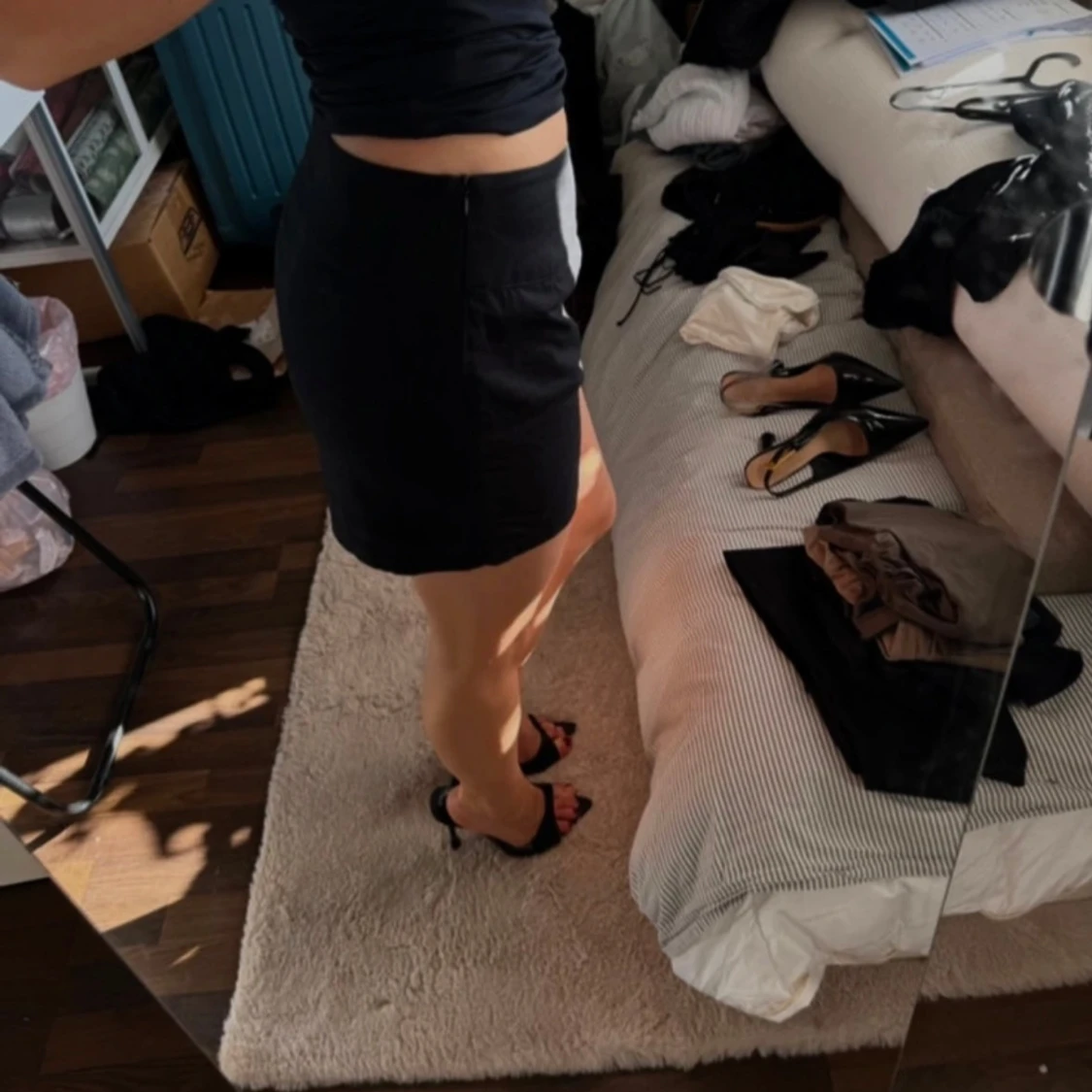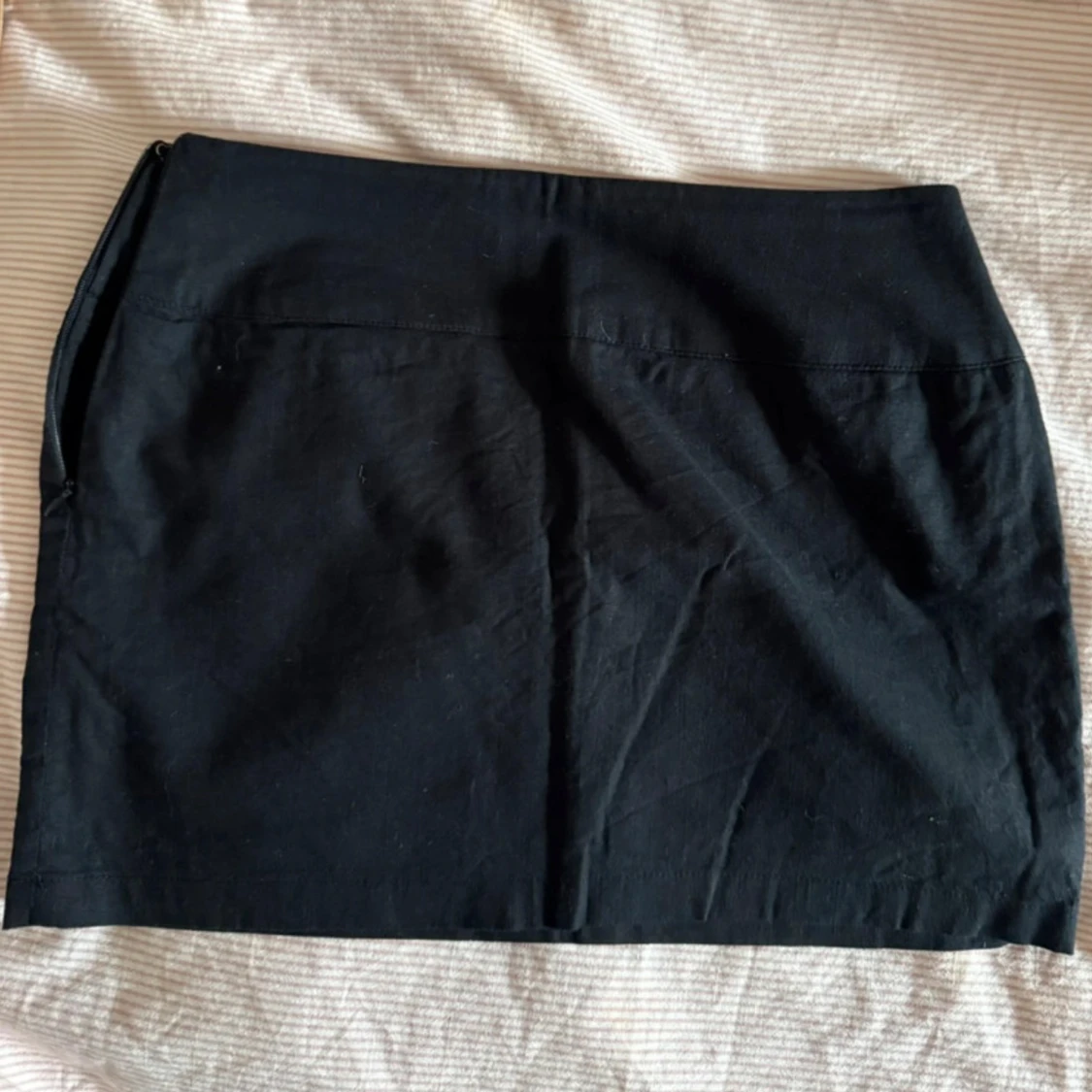 Enkel och stilren svart kortkjol i bomull med tight passform. Kjolen har en diskret dragkedja i sidan och är perfekt att matcha med crop tops eller t-shirts. Klassisk design utan mönster eller extra detaljer.
