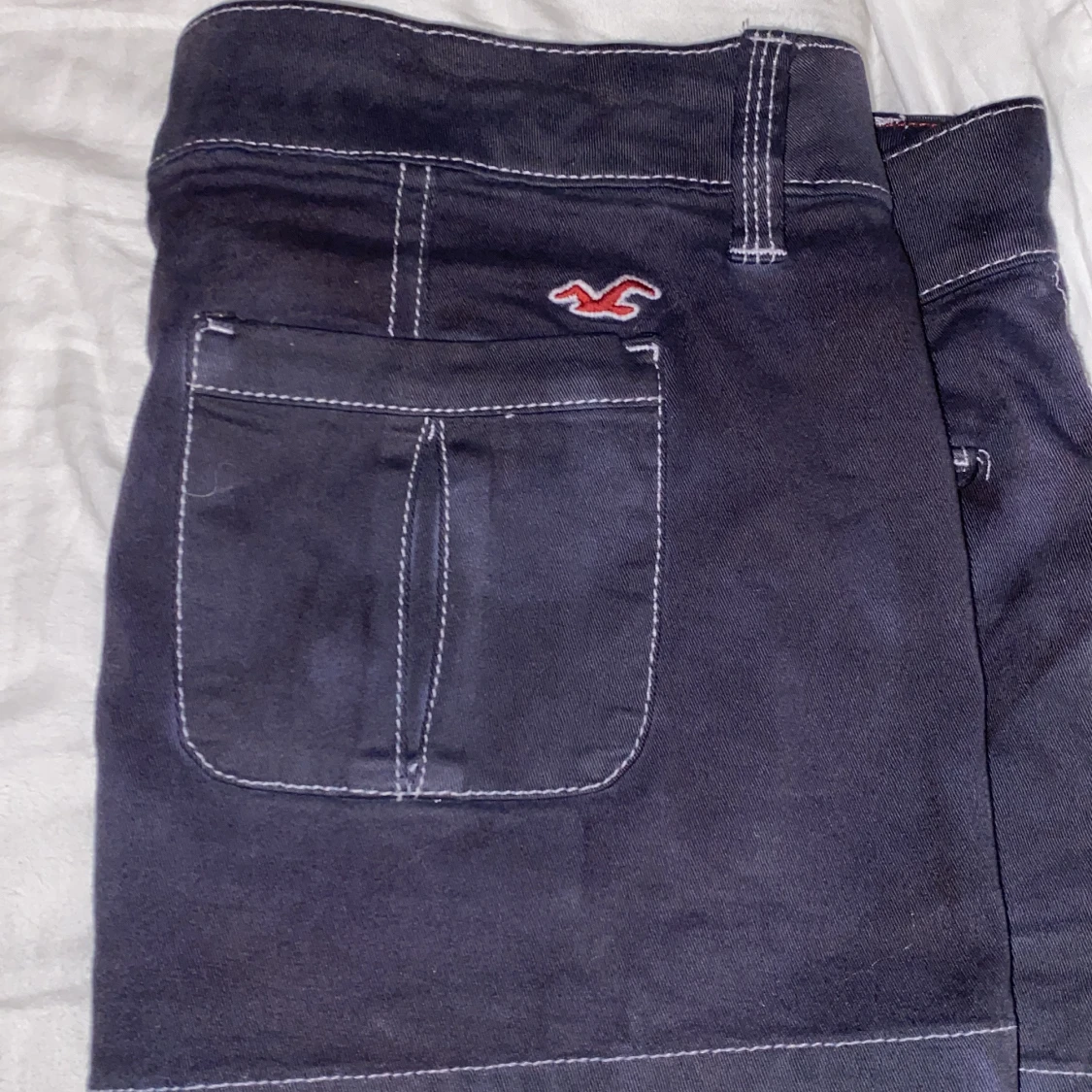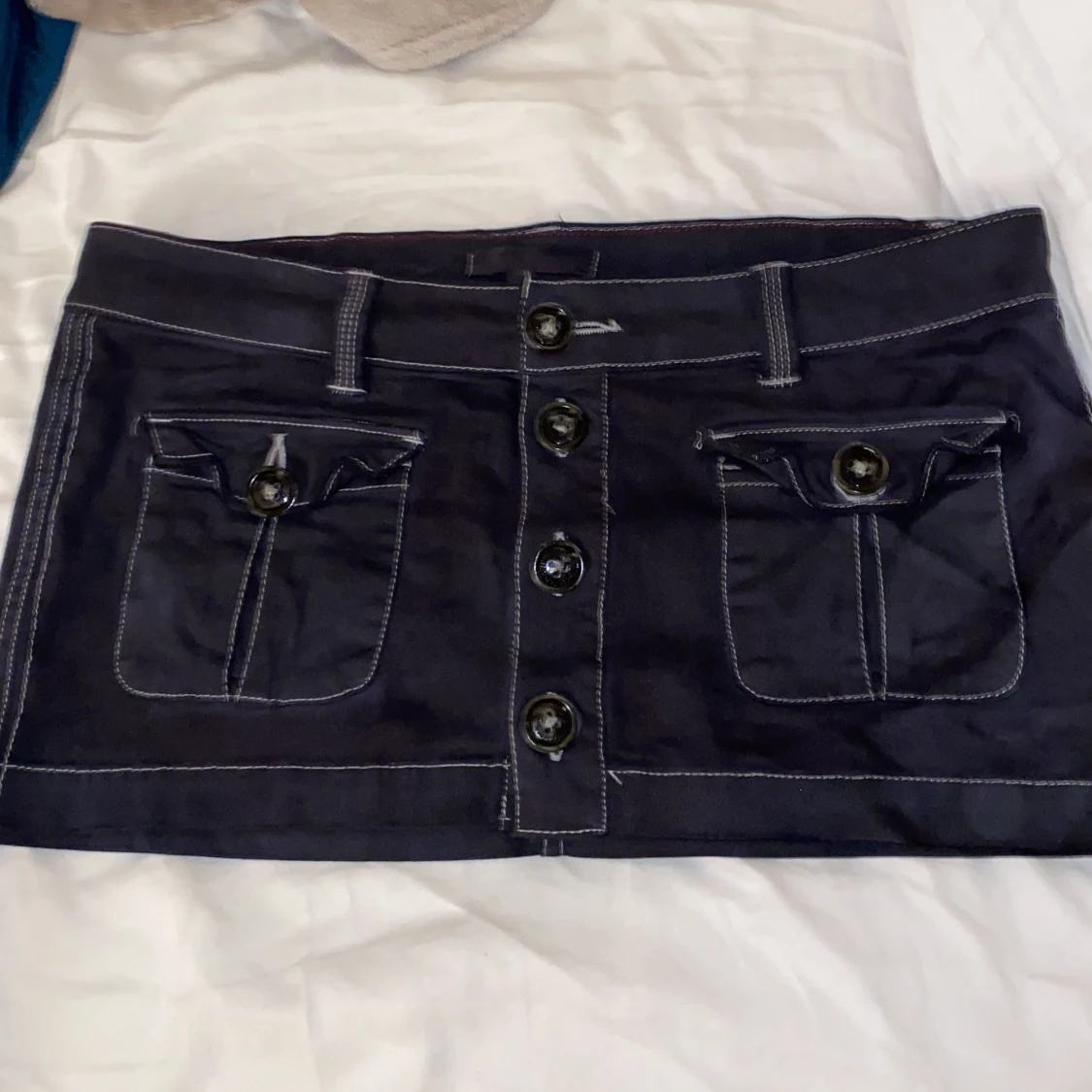 Snygg svart kortkjol från Hollister med framträdande knappar och fickor fram. Kjolen har en stilren design med vita sömmar🙌💕💕