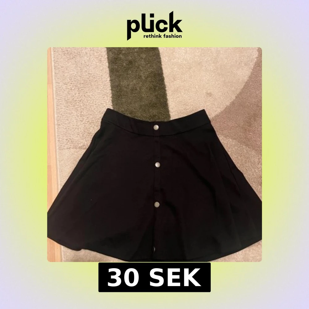 Svart A-linjeformad kortkjol med snygga silverfärgade knappar längs hela framsidan. Kjolen har en enkel och stilren design som passar till många olika looks. Materialet känns mjukt och följsamt, perfekt för dig som gillar minimalistisk stil.