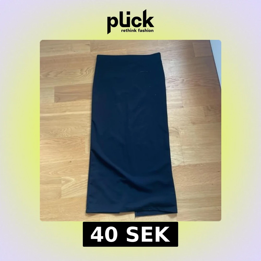 En svart stilren slimmad långkjol. Den är i storlek xs och är 85 cm lång. Köpt för 150 kr. Den har en resor i midjan, vilket gör att den är stretchig. Den har en slits där bak som gör det enkelt att gå. 💗