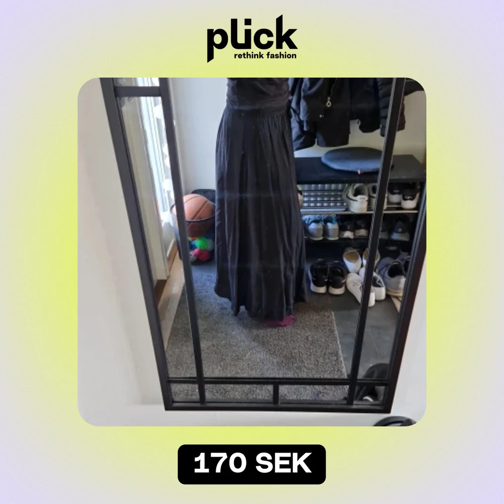 Säljer min svarta långkjol då den inte riktigt passar. Använd ett fåtal gånger, i nyskick.✨️ Funkar bra att ha både hög och lågmidjat.🥰 Den är i M men skulle säga att den passar S eller en liten M