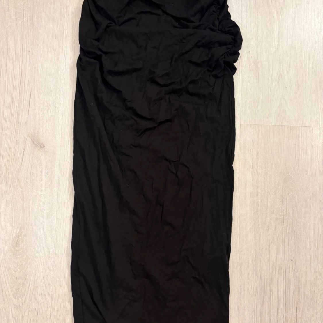 En svart långkjol från Gina Tricot i enkel och stilren design. Kjolen har en rak passform och är tillverkad i ett mjukt och stretchigt material som sitter bekvämt. Perfekt att matcha med en crop top eller stickad tröja.