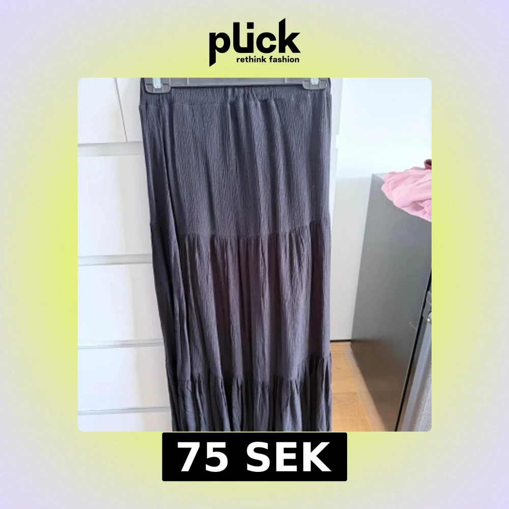 Säljer en svart långkjol från & Other Stories i storlek XXS. Kjolen har en volangig design med flera lager och resår i midjan. Materialet är lätt och har en krinklad struktur som ger en avslappnad känsla. Perfekt för dig som gillar en flowy och stilren look.