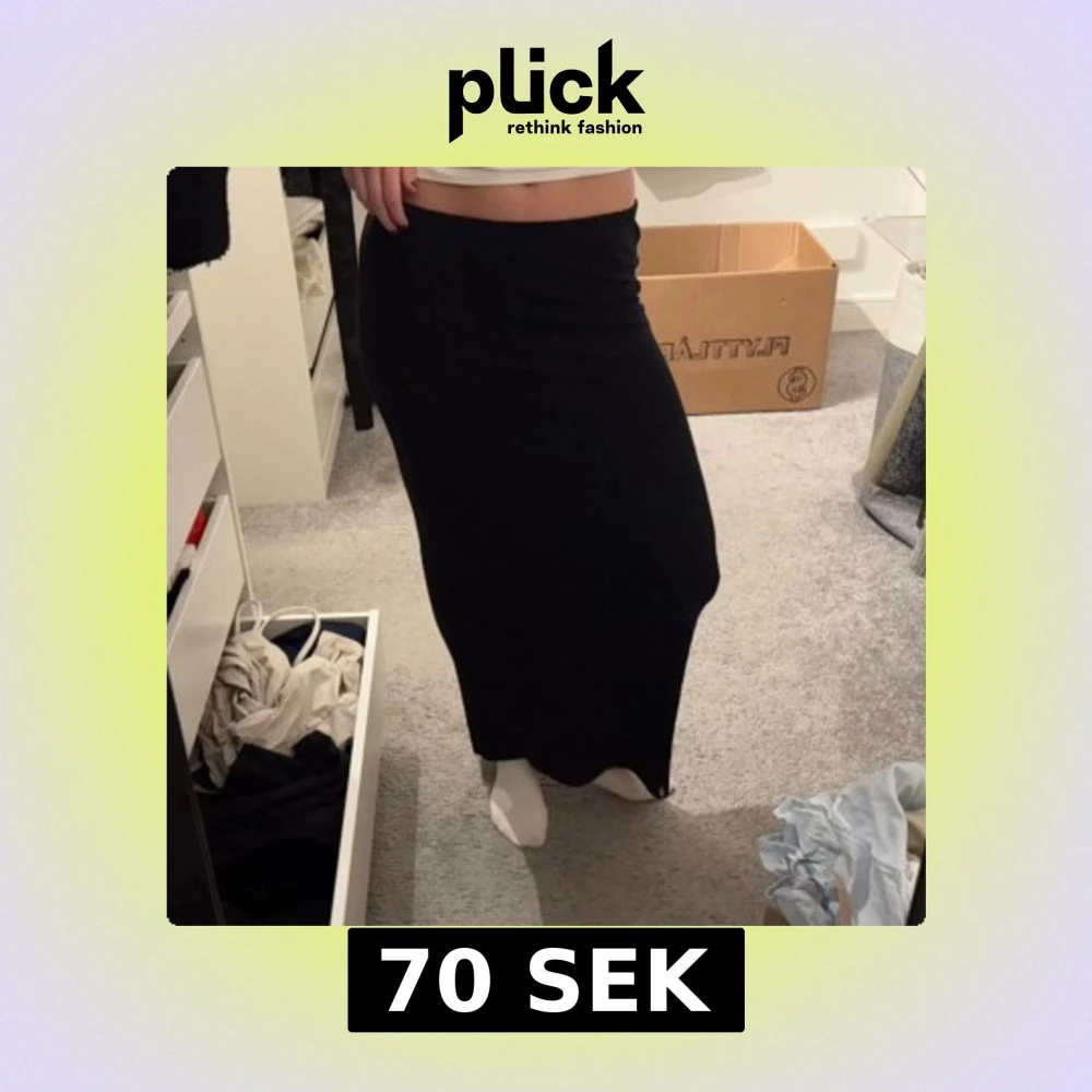 Säljer en svart långkjol med rak och tight passform. Kjolen är enkel och stilren utan mönster eller detaljer, och är gjord i ett mjukt och stretchigt material som sitter skönt mot kroppen. Perfekt att matcha med crop tops eller hoodies.