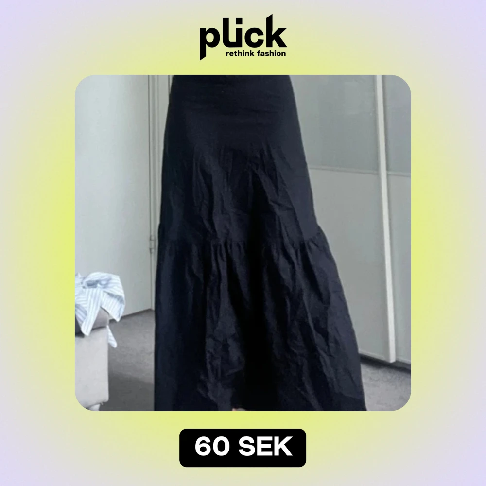 Svart långkjol från Lindex i strl S. Börjar ganska smal och breddar sedan ut lite i volang. Den har en dragkedja på baksidan🖤🖤
