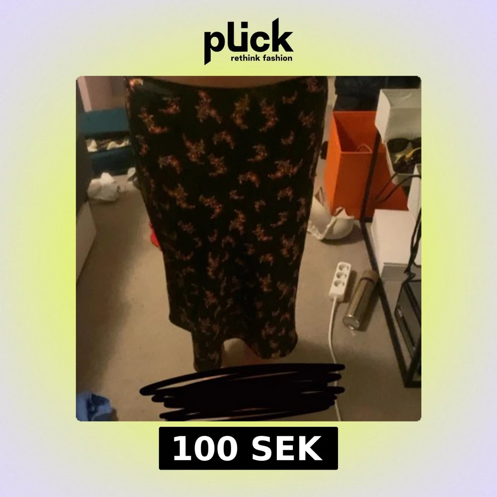 Svart satin långkjol med små blommiga mönster i rosa och orangea toner. Jag är cirka 175cm