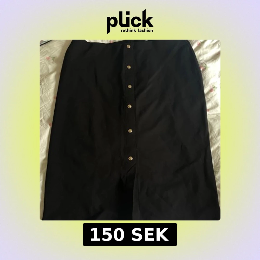 Stilren svart långkjol från H&M i storlek XXL. Kjolen har raka linjer och snygga guldfärgade knappar framtill som ger en clean look. Perfekt att matcha med en crop top eller stickad tröja. Materialet känns mjukt och följsamt.