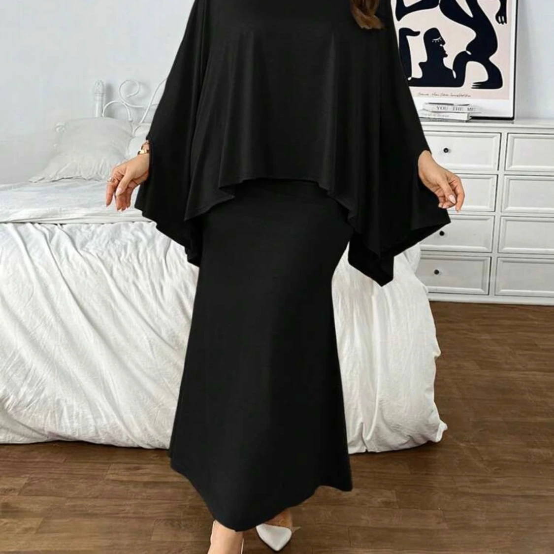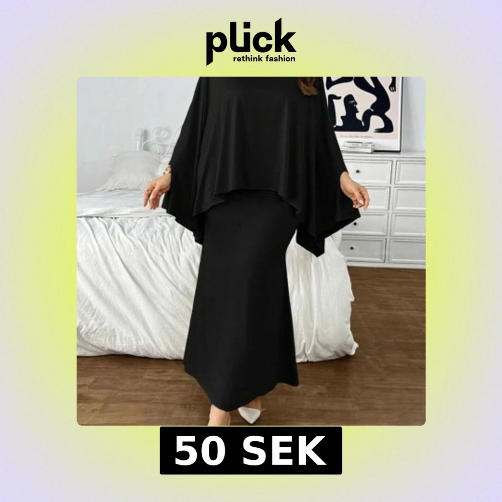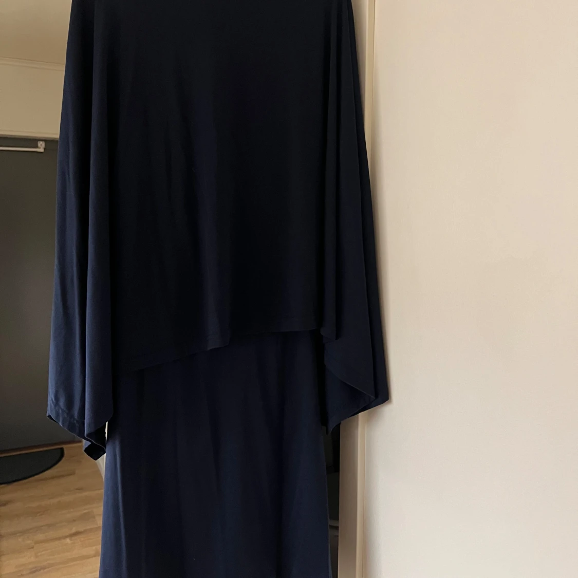 Co-ord sett med kjol samt poncho. Marinblått.
