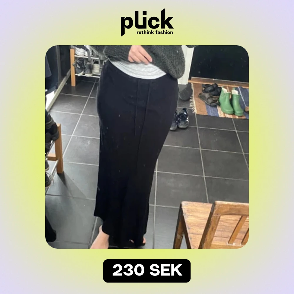 Svart lång, kjol. Linnematerial. från asos. Storlek S. Använd en gång. Var för liten, och hann inte skicka tillbaka den.