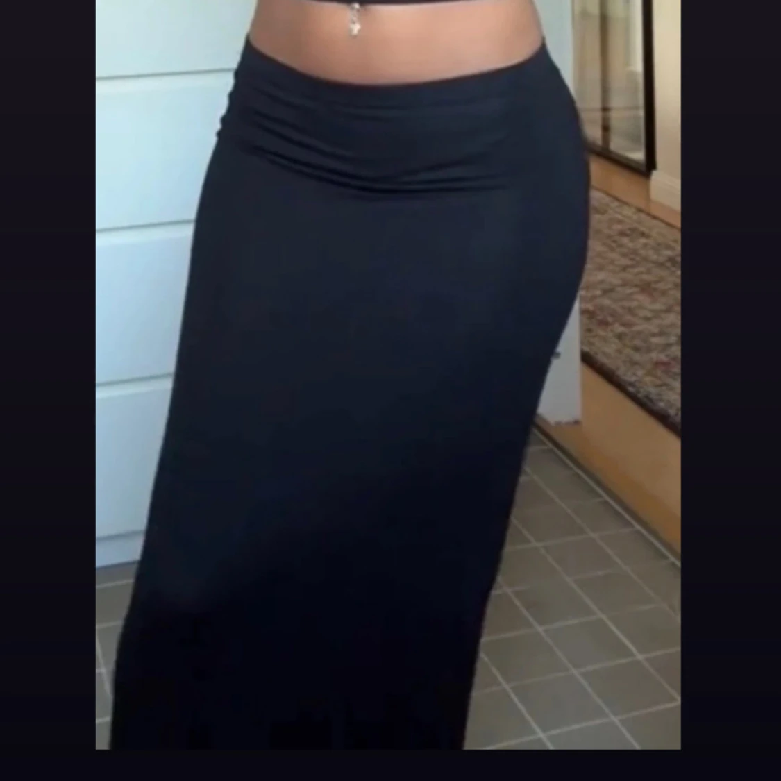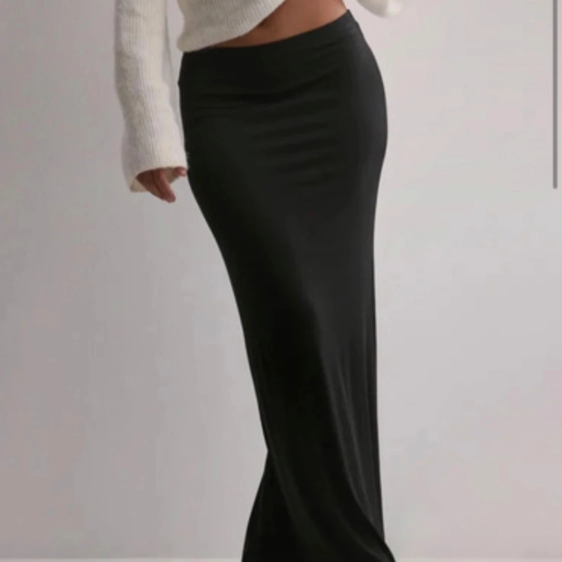 Säljer en svart maxikjol med låg midja från Nelly. Kjolen har en ganska tight passform och den är i XXS. Helt oanvänd med prislappen kvar 🥰