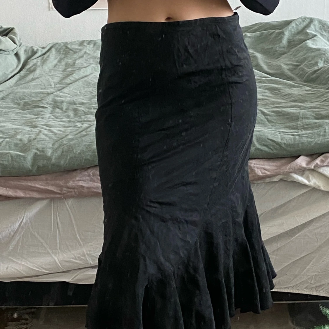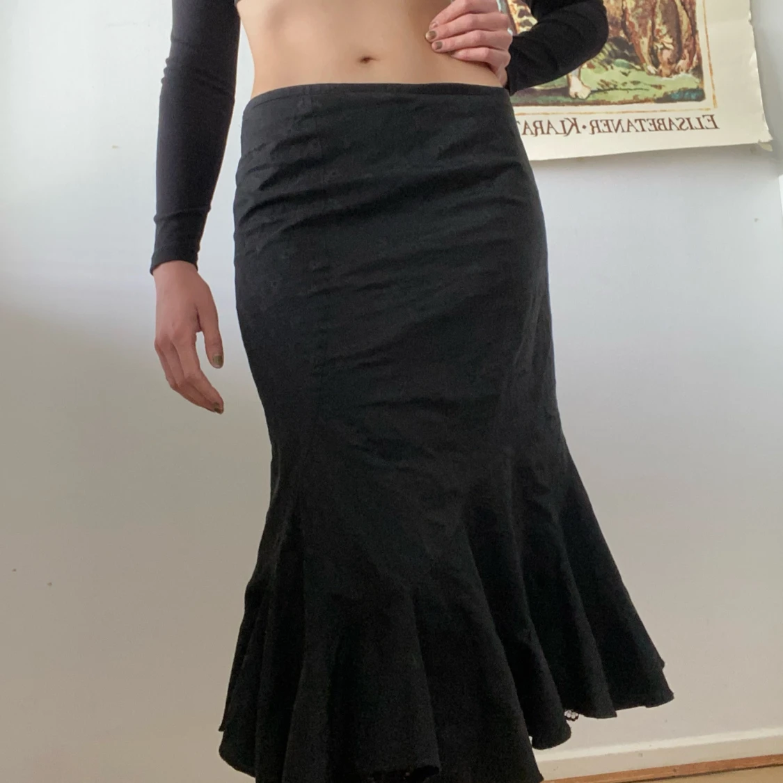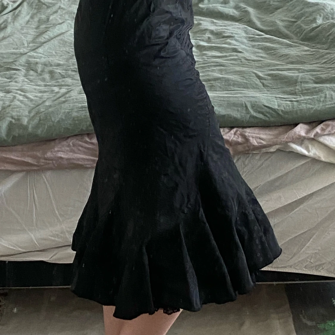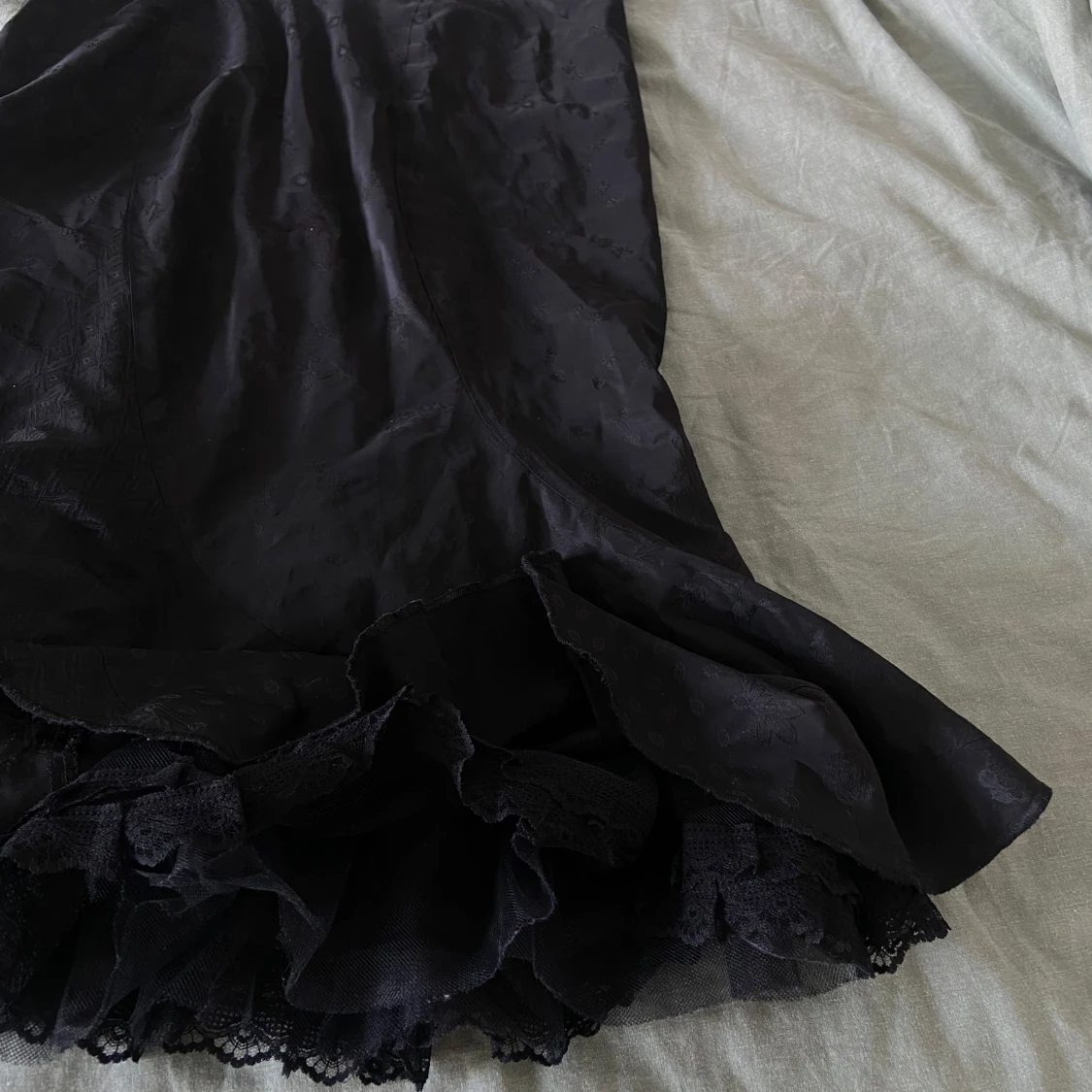 Supersnygg svart kjol med volangkant och spetsdetaljer på innerkanten✨ köpt på humana