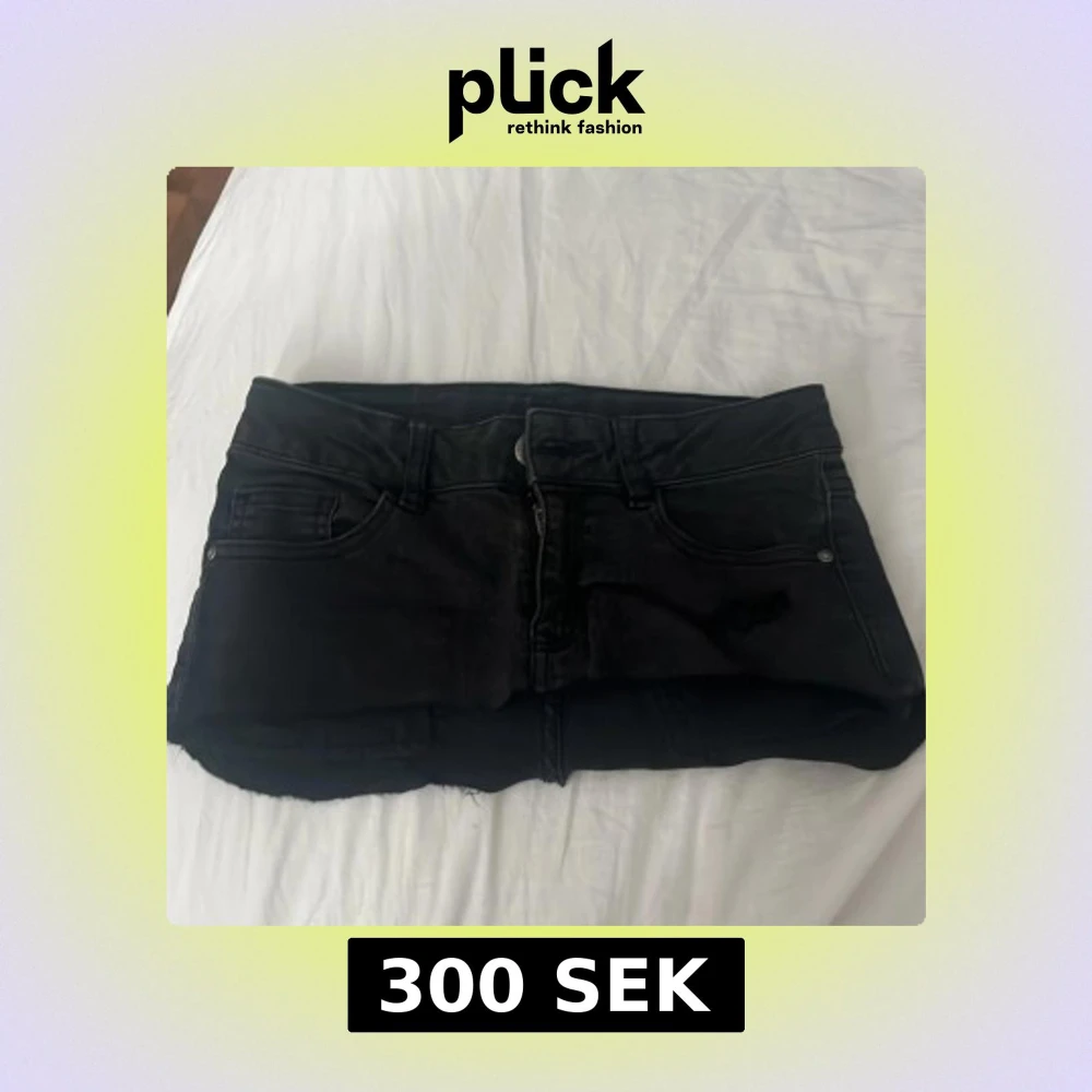 Snygg svart denim mini kjol. Den har fina detaljer där bak på fickorna, och är perfekt för en somrig outfit. Denna är dock väldigt kort och low waist men den är sjukt snygg på och har fått hemskt många komplimanger av att ha på mig denna! Storleken är mixad och passar både xxs-xs-s 💕💕